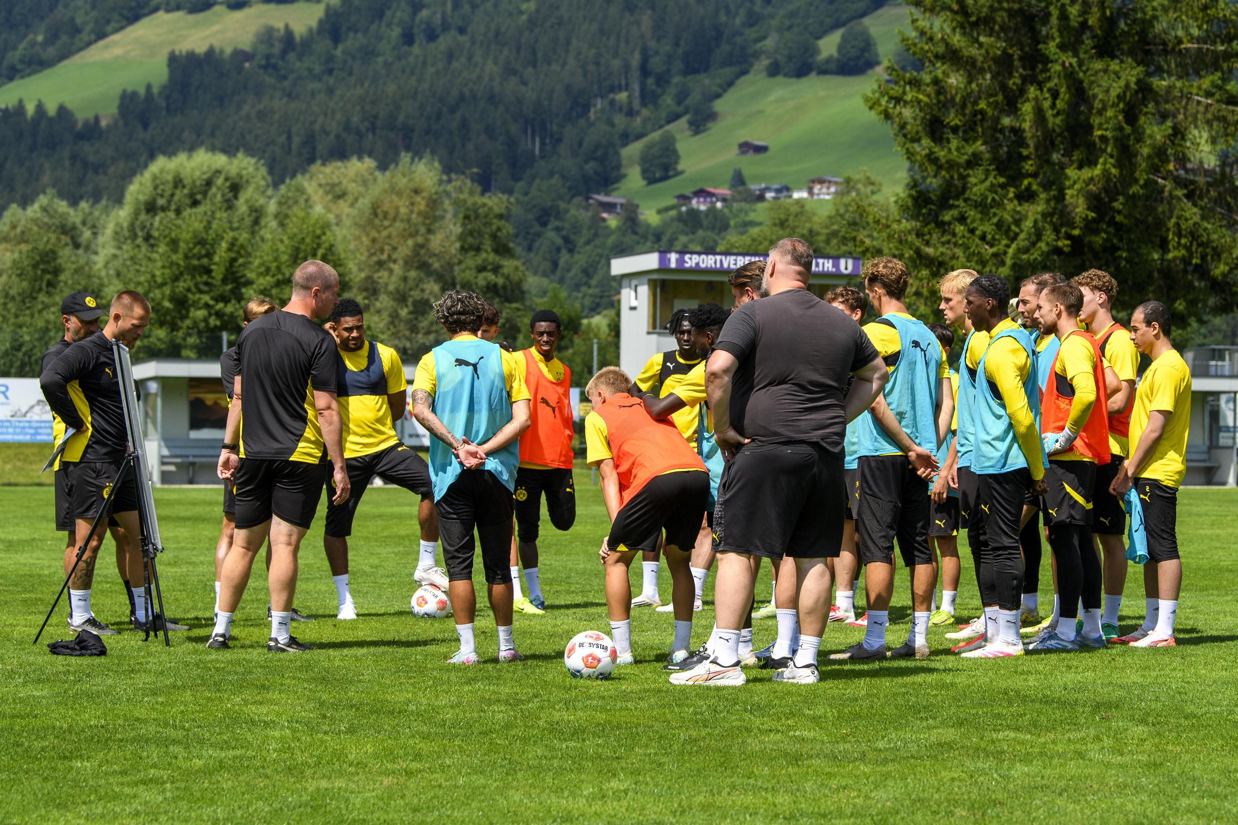 U23 training camp of Borussia Dortmund in the Brixental with intensive sessions, tactical exercises, and set pieces. Optimal preparation for the new season in an alpine environment.