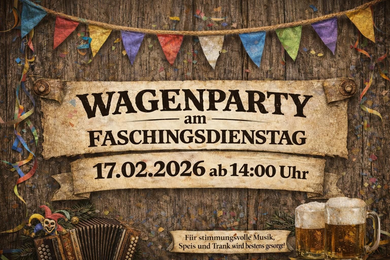 Carnival Party of the Höpfeler Hexen customs group: The witches' vehicle will be on the Seefeld village square on Shrove Tuesday. Drinks and atmospheric music will be provided! Celebrate the end of this year's carnival season with us!
