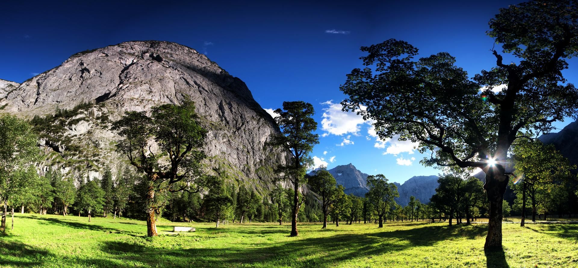 Adjacent to the ‘Großer Ahornboden’ natural monument, nestled between the rugged cliffs of the Karwendel mountains and surrounded by lush green meadows, lies the alpine village of Eng. For hundreds of years, a village community has developed here from spring to autumn. Almerer come together again after the winter and look after their happy cows, whose feed consists solely of alpine herbs from the lush green meadows. Taste the special flavour of this cheese, which is produced directly on site. Take part in this unique mountain idyll for a day or hike on to the slightly higher Binsalm.