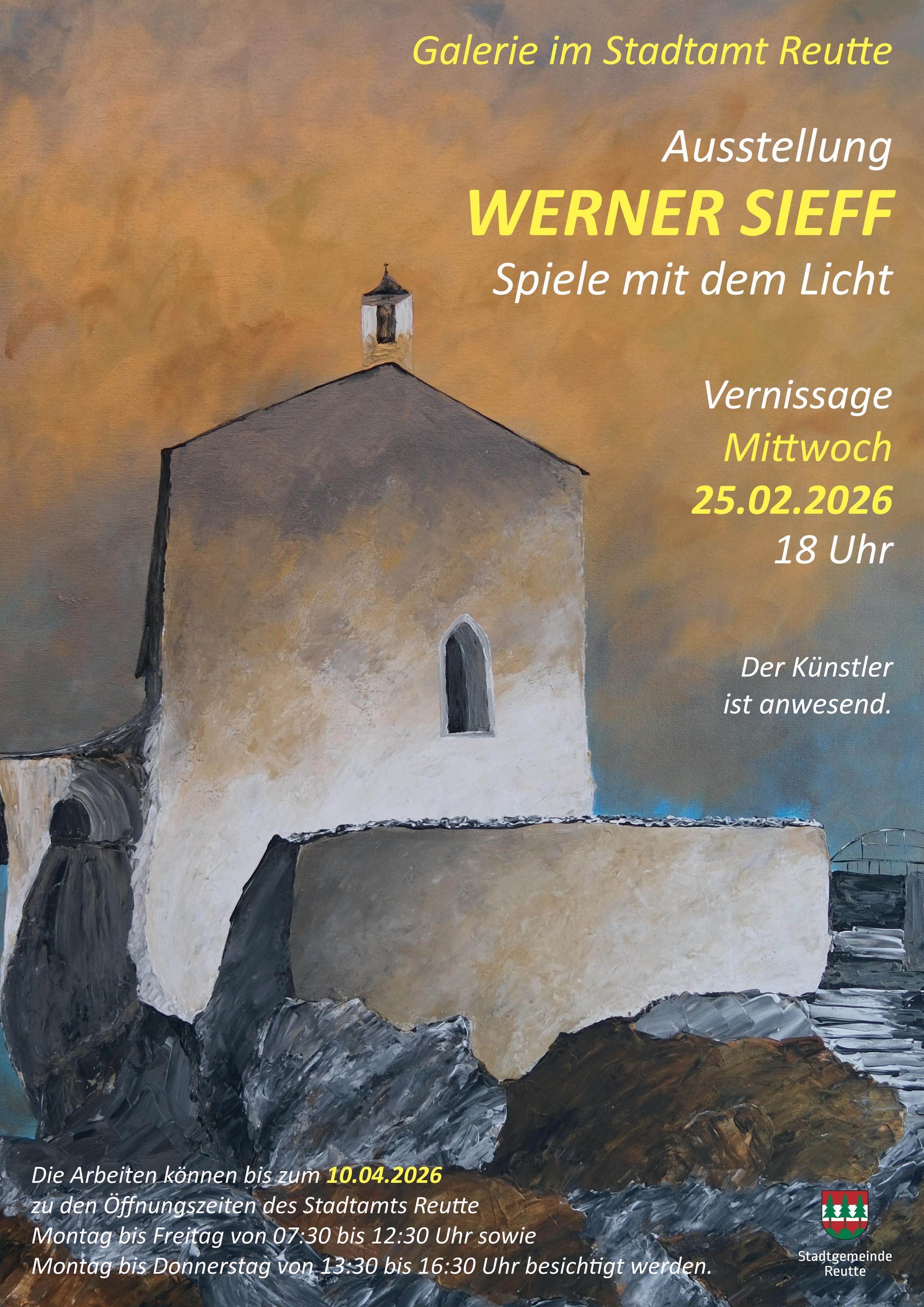 As a landscape painter, he seeks his motifs in the mountains of our homeland: farms, chapels, villages. His paintings, created using a coarse spatula technique and brushes, capture special moods and lighting situations. / The exhibition can be visited from Monday to Friday from 07:30 AM to 12:30 PM and from Monday to Thursday from 1:30 PM to 4:30 PM.