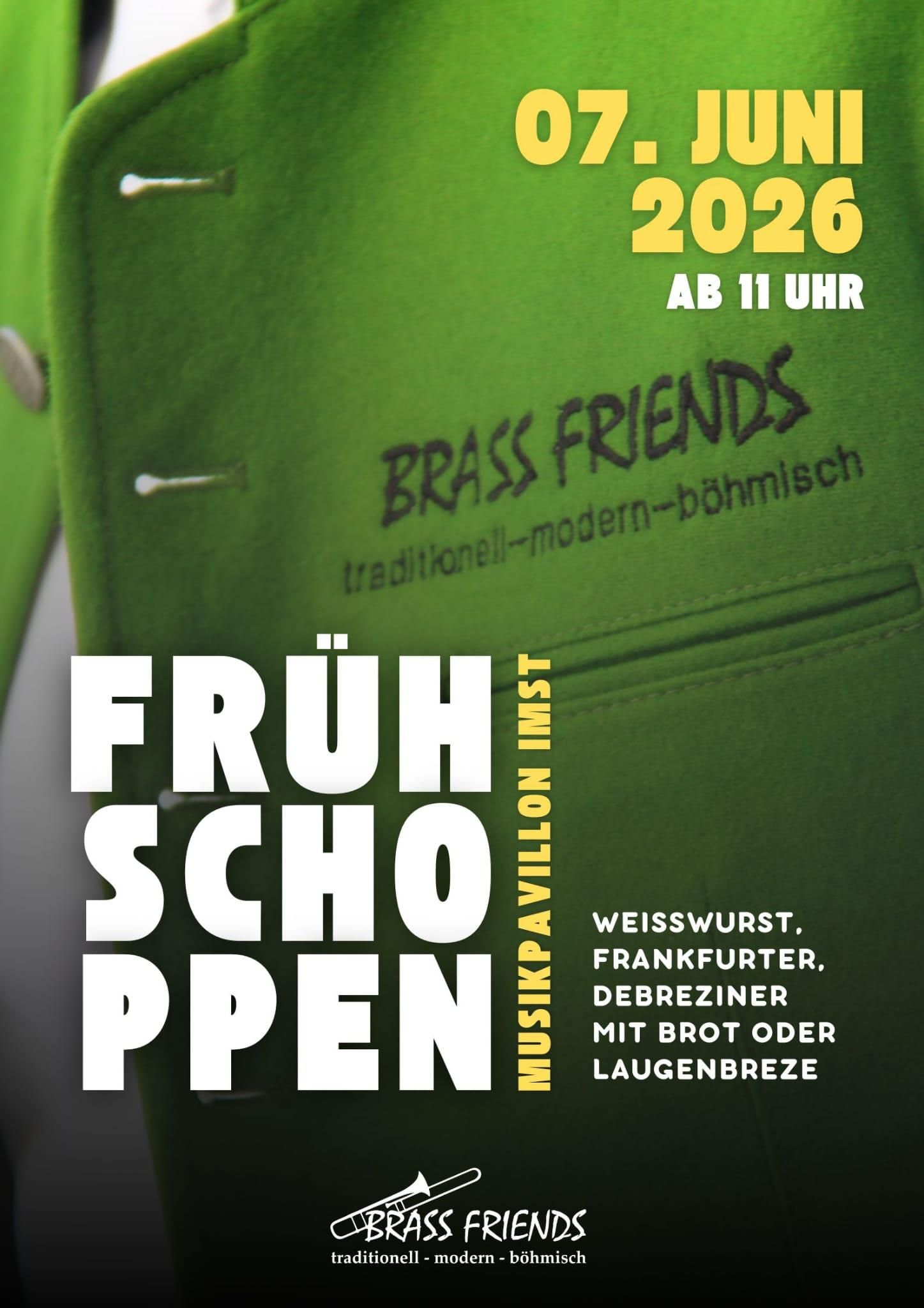 Brass Friends invites you to a brunch at the music pavilion in Imst on Sunday, June 7, 2026, starting at 11:00 AM.