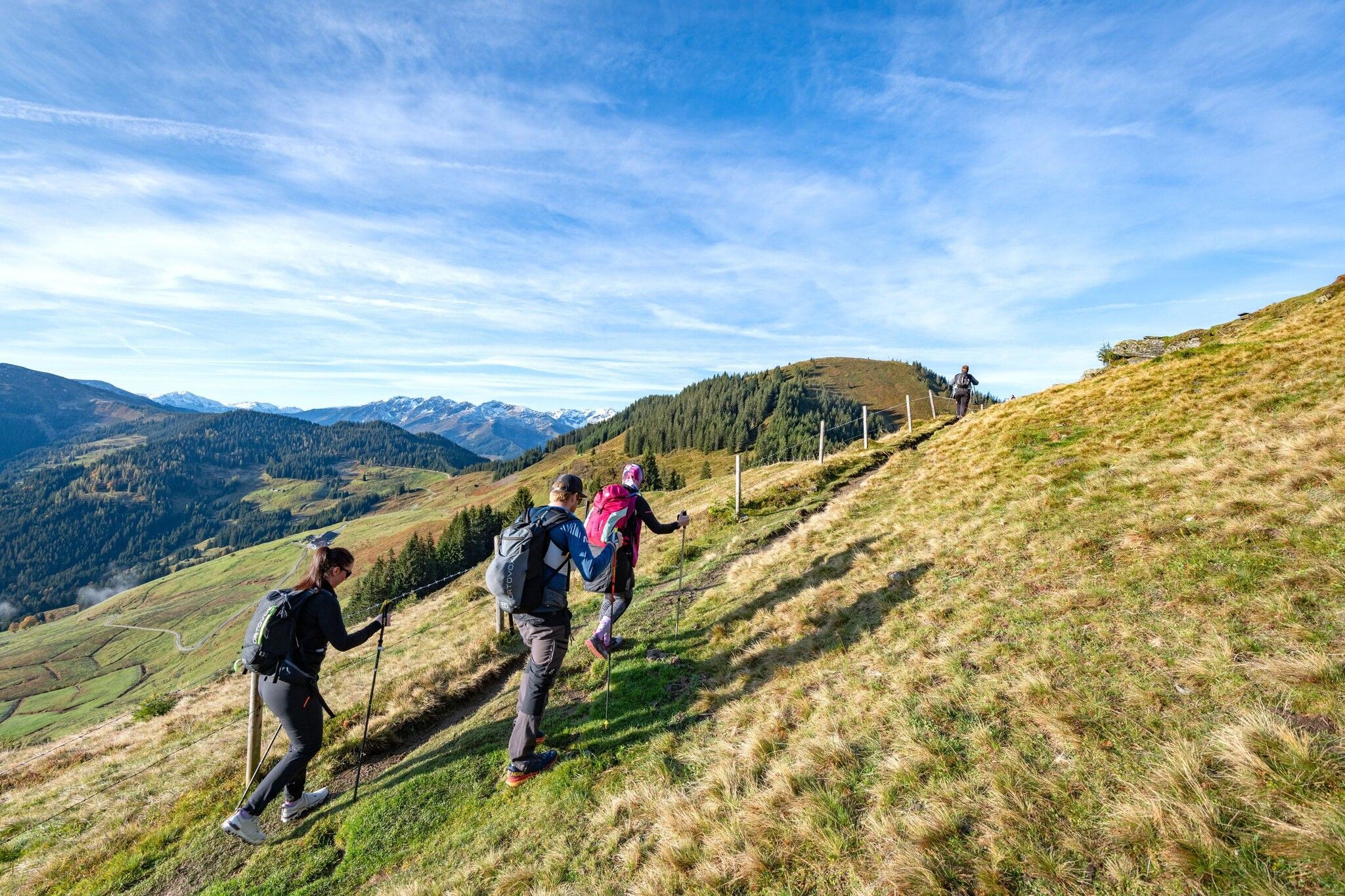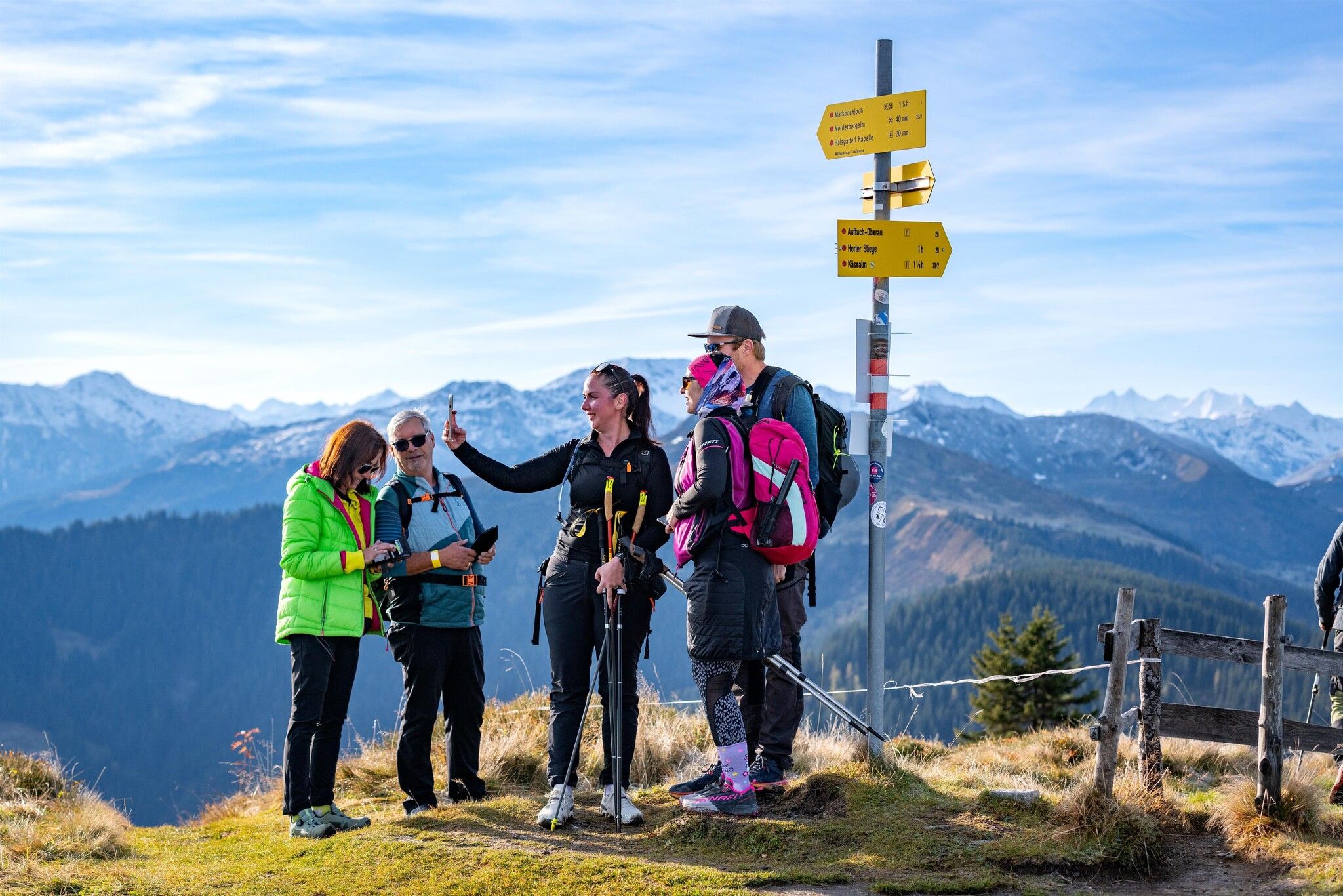 The Uphill Tour starts at the bottom station of the Markbachjoch cable car and follows the same route over all peaks to the Schönangeralm.