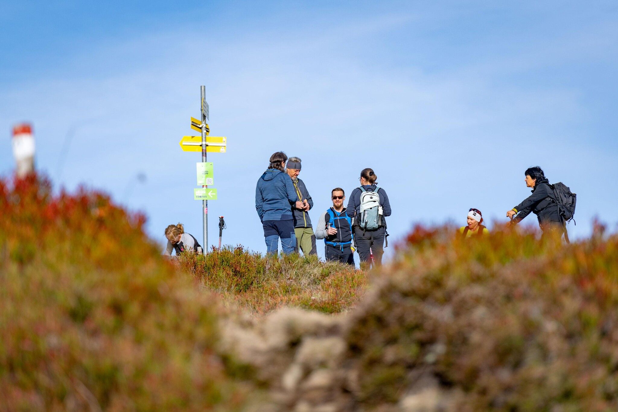 The hiking route for solo participants and 3-person teams leads from Markbachjoch over Rosskopf, Feldalphorn, Schwaigberghorn, and Breiteggern to Schönangeralm.