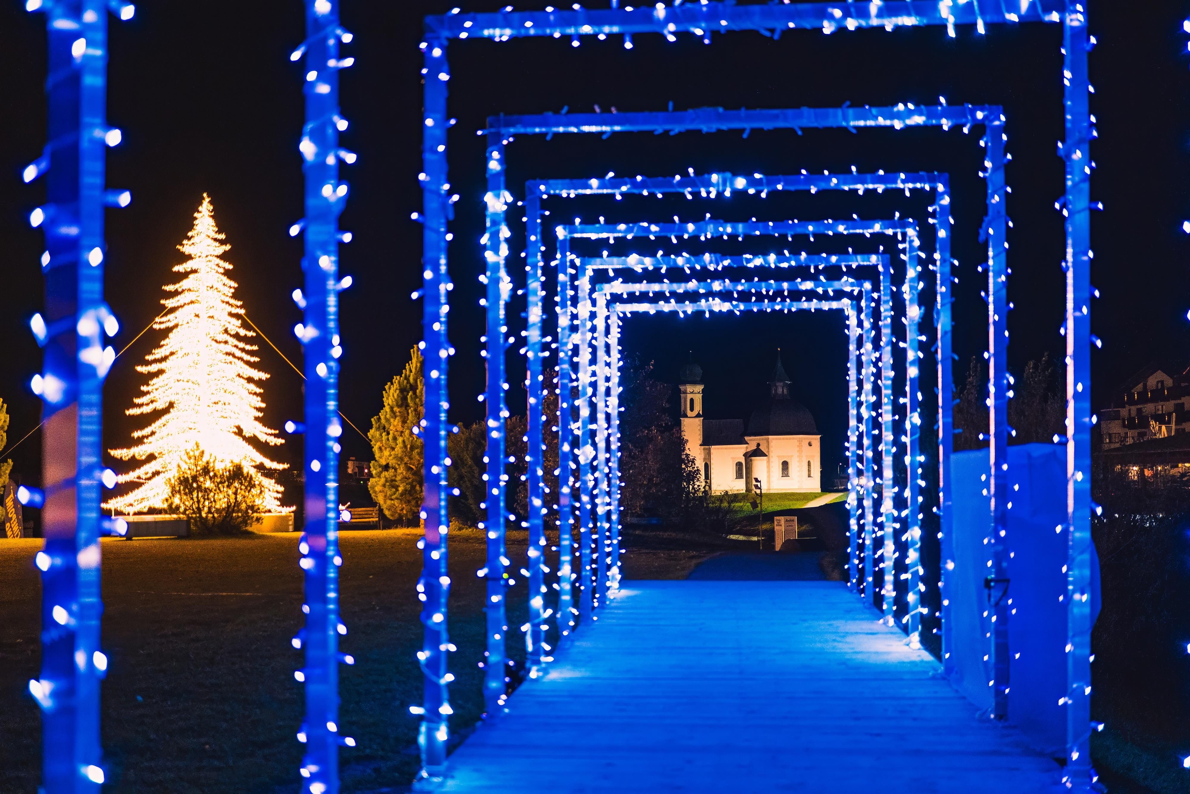 Starting from early November, Seefeld (in the Kurpark, at the village square, near the Olympiabad pool, and Seekirchl) captivates with atmospheric light installations. Special highlights include the Fir Tree by Peter Rimark (Slovakia), located near the Olympic pool, which conveys a calm and festive mood with its clear, modern lines. The two swings, also located near the Olympic pool, invite visitors to playfully experience the winter landscape and blend harmoniously into the scenery. Additionally, a backlit cross-country skier in the pedestrian zone perfectly integrates into the cross-country skiing region and emphasizes Seefeld's sporty flair. All these light motifs and many more await visitors in the pedestrian zone and in the Seefeld Light Park, where a sparkling atmosphere warms the heart. More information here.