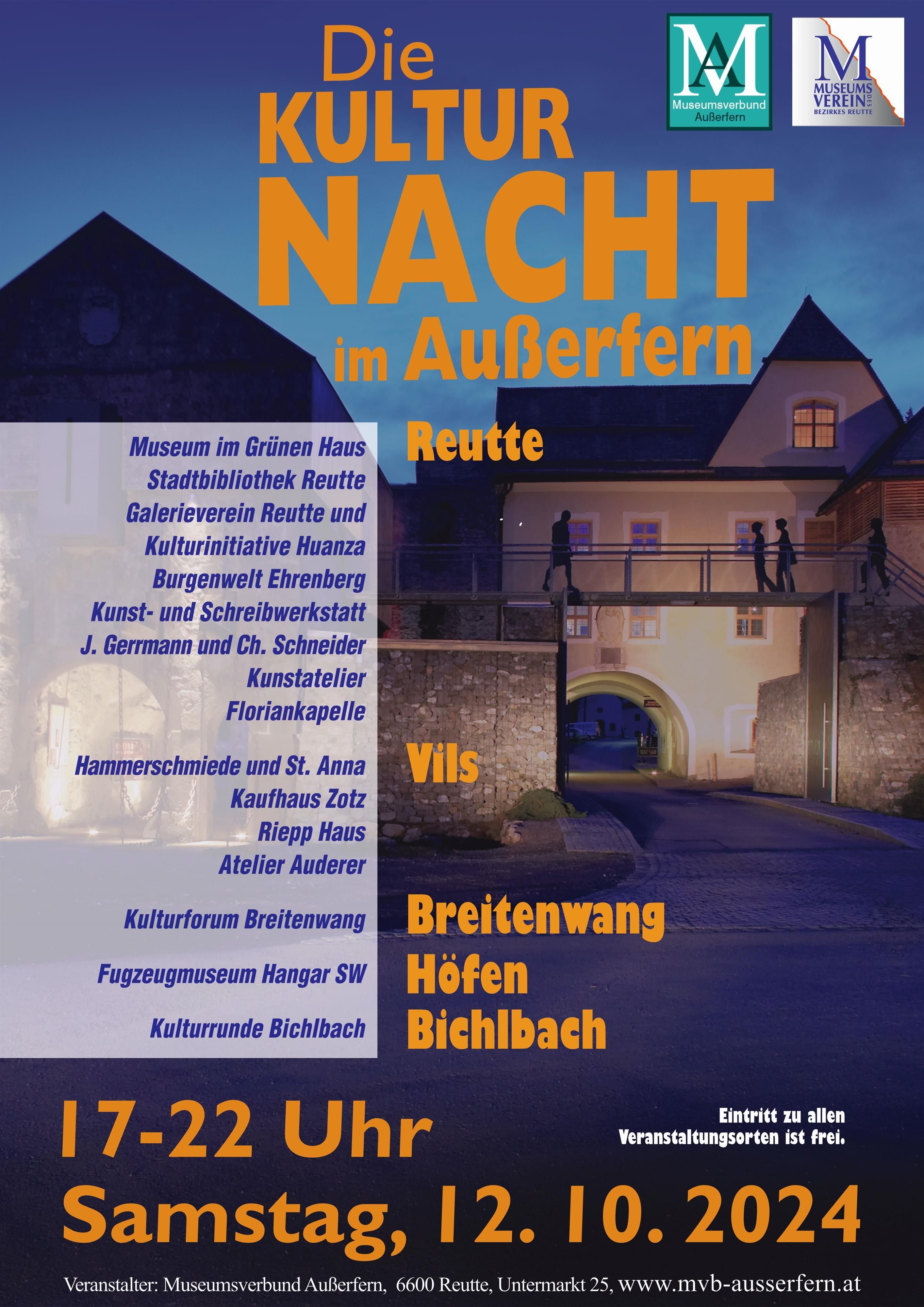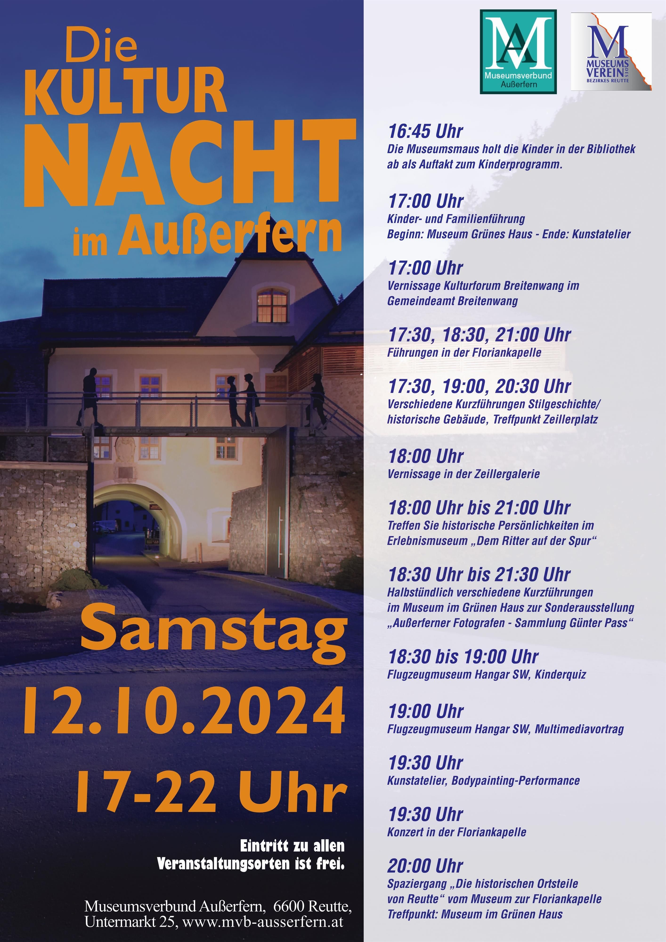 Admission free / The museums and galleries in the Ausserfern invite you to visit again. A colorful program awaits night owls from 5:00 p.m. to 10:00 p.m.: informative exhibitions, music, art & much more / details at www.mvb-ausserfern.at and www.museum-reutte.at