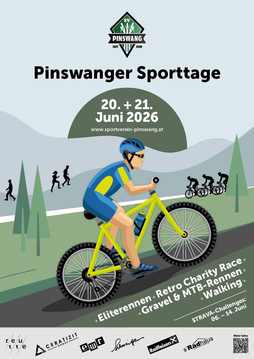 Mountain run (4.1 km - 350 vertical meters) / VIRTUALLY via the Strava app / Entry fee: 15 € (advance payment) - children under 16 years free of charge / Every registered starter has the opportunity to run their personal best time on the Dreiländereck / More information about the course on the homepage: www.sportverein-pinswang.at