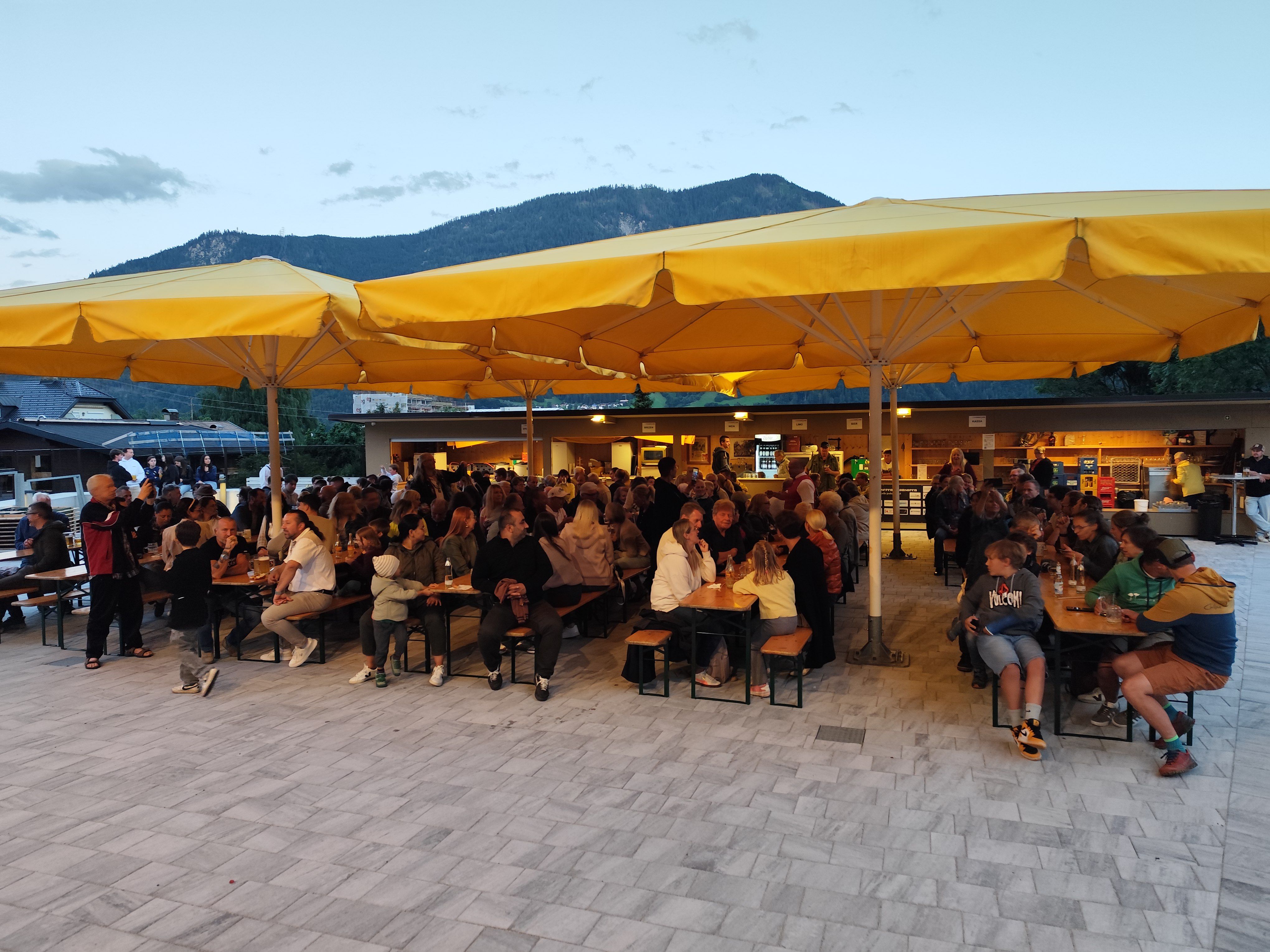 Platzkonzert bei jedem Wetter mit Überdachung und Ausschank, für Unterhaltung, Speis und Trank ist bestens gesorgt.