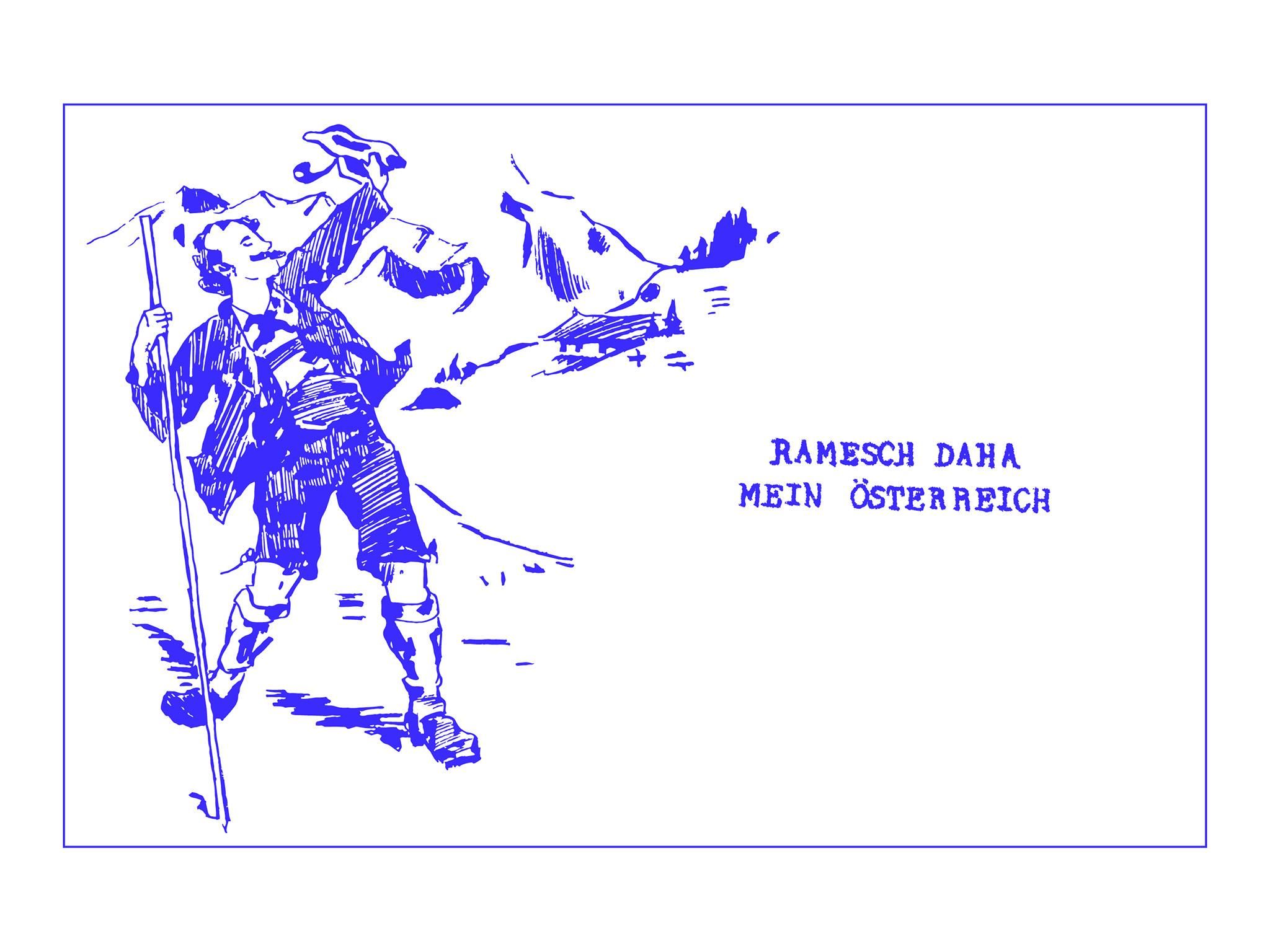 Painter and conceptual artist Ramesch Daha dedicates her first institutional solo exhibition in Austria to the country where she lives. For the show Mein Österreich (My Austria) Daha has created a new body of work where she transforms motifs from postcards into murals.