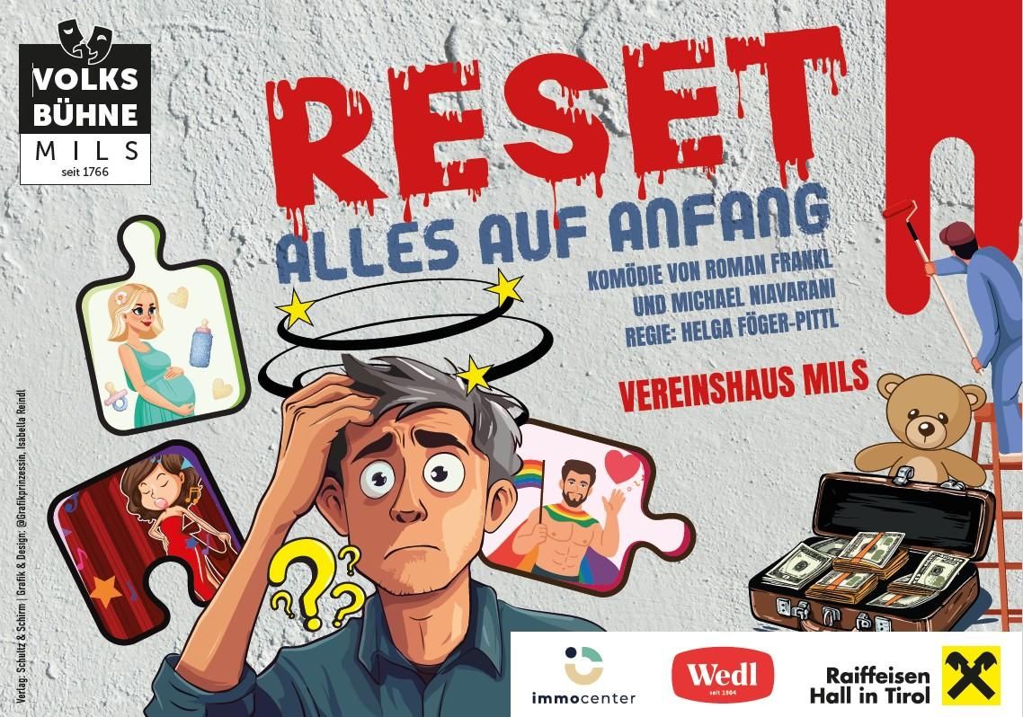 DescriptionComedy by Roman Frankl and Michael NiavaraniDirector: Helga Föger-PittlDoors open: 7 PMTickets available from 2.03.2026 / Admission: 14 EuroReservations only online at www.volksbuehne-mils.at