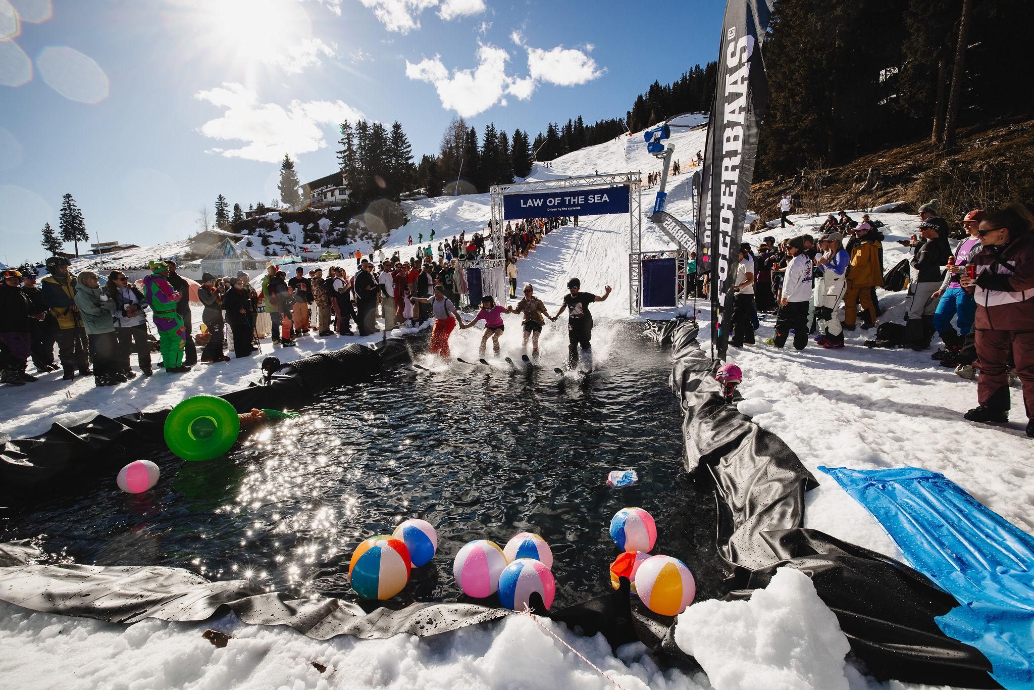 Race down the slopes on skis or a snowboard and splash through our water basin in an original way. Fun is guaranteed. There will be a jury and an award ceremony, so bring your best outfit and get started!