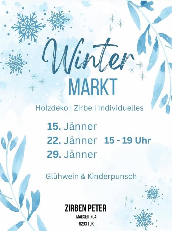 At the Winter Market at Zirben Peter, visitors are invited to a cozy experience on three dates in January. In a festive winter atmosphere, handcrafted wooden decorations, high-quality Zirben products, and individual unique pieces will be presented, which also make ideal gifts.