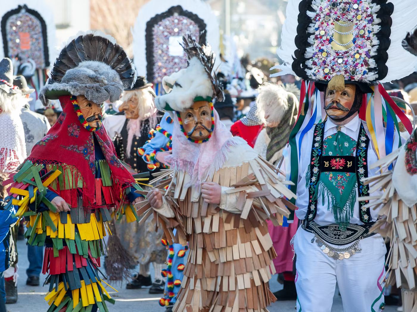 The customs and rites of carnival in Tyrol date back to pre-Christian times. They have their origins in pagan fertility rituals and traditions for exorcising winter in Austria. Winter was often long and hard in the Alpine regions. Costumes and masks were worn at carnival time to welcome spring and drive away winter. Figures such as witches, devils or wild men usually stood for evil winter spirits, while colourful masks decorated with flowers represented spring. To this day, carnival parades and festivals are held in numerous towns in Tyrol. Many are now recognised as intangible cultural heritage.