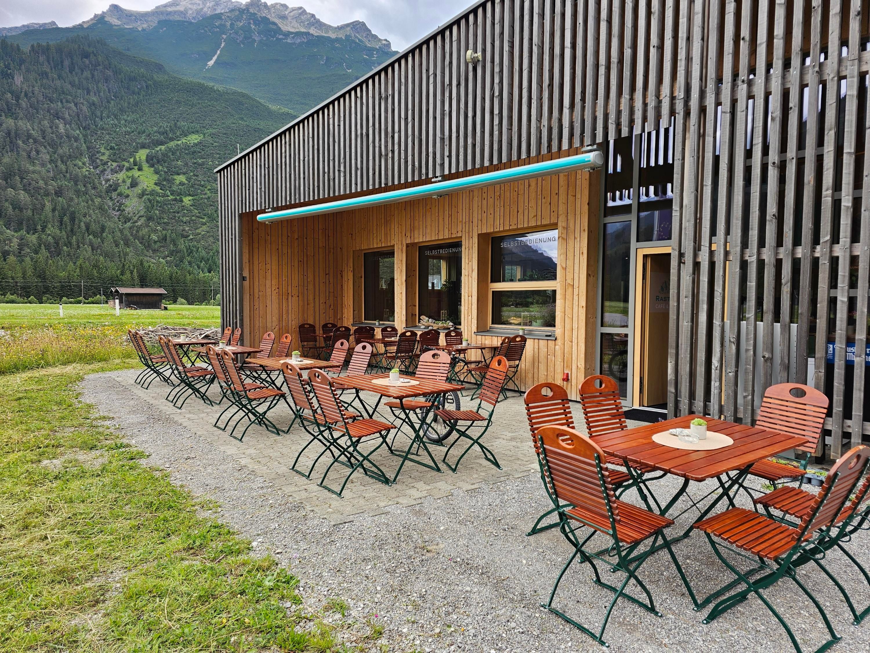 Just a stone's throw from the Hotel LechZeit, our new self-service café & snack bar invites you to take a break - featuring fine delicacies, homemade cakes, and a sun terrace with a view of the Lechtal.