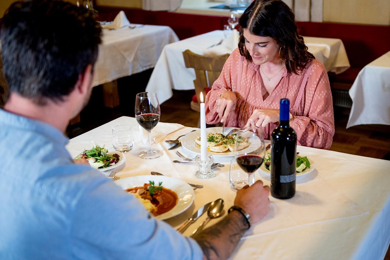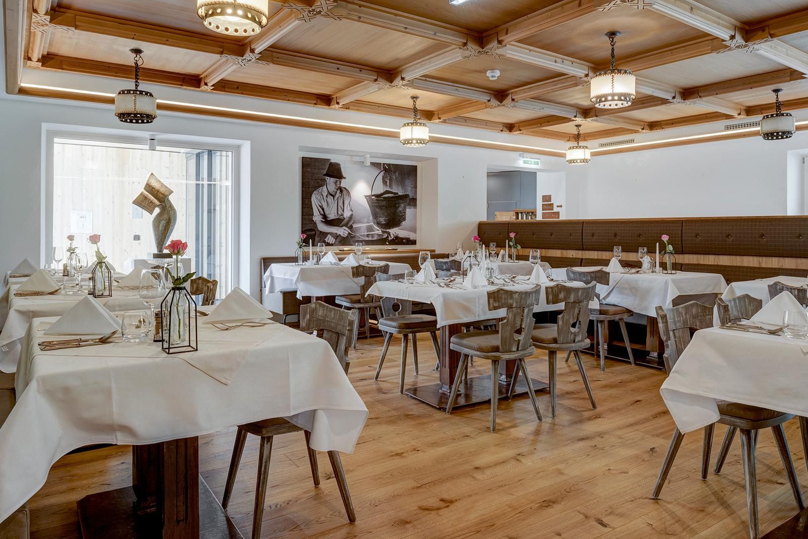 The Unterrain Stuben at the Hotel Fokus combine culinary excellence with living Tyrolean tradition. The charming history of the house meets modern elegance – visible in the lovingly staged details such as the historic farmhouse stove, the original tables and chairs or the family photos of the founders.