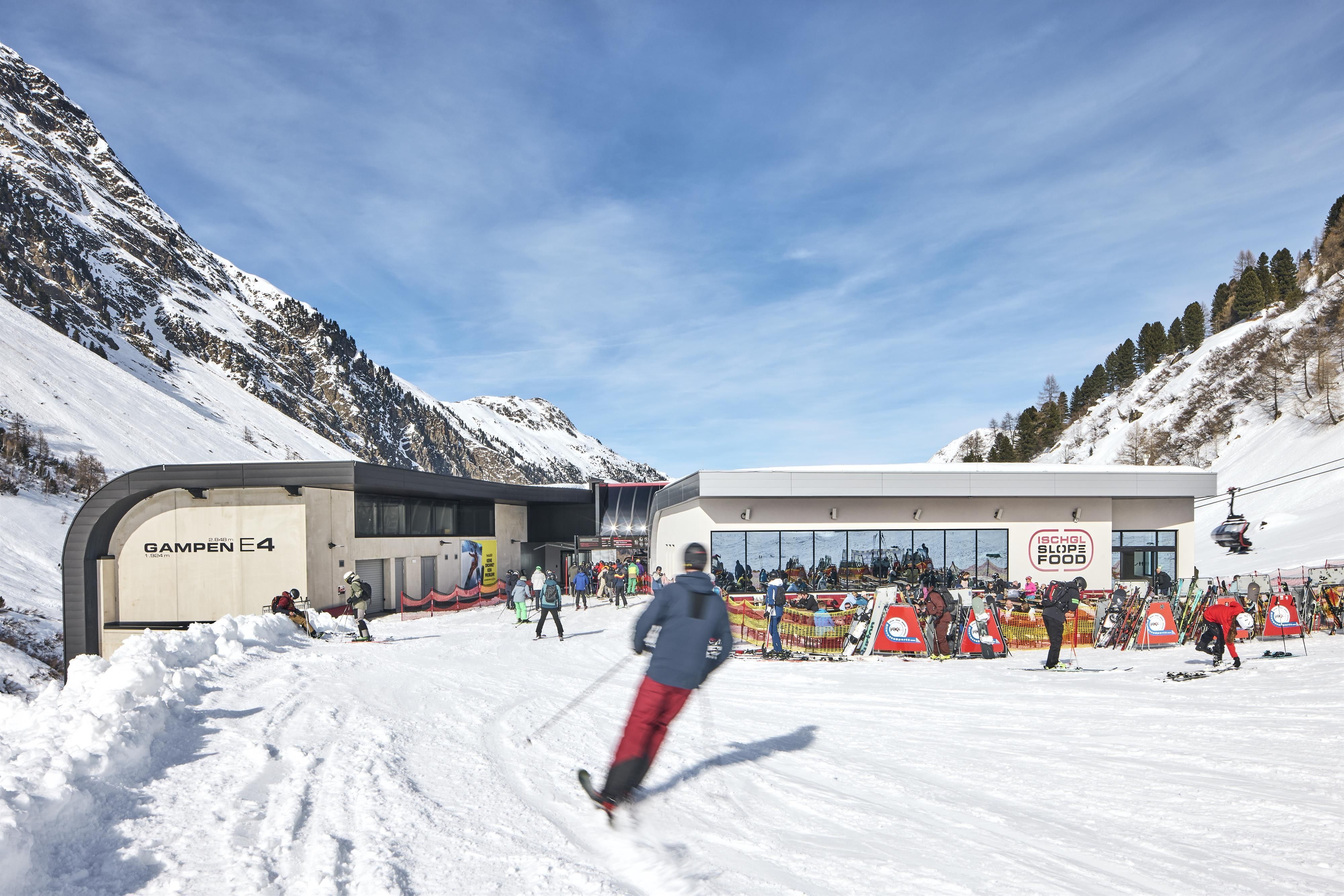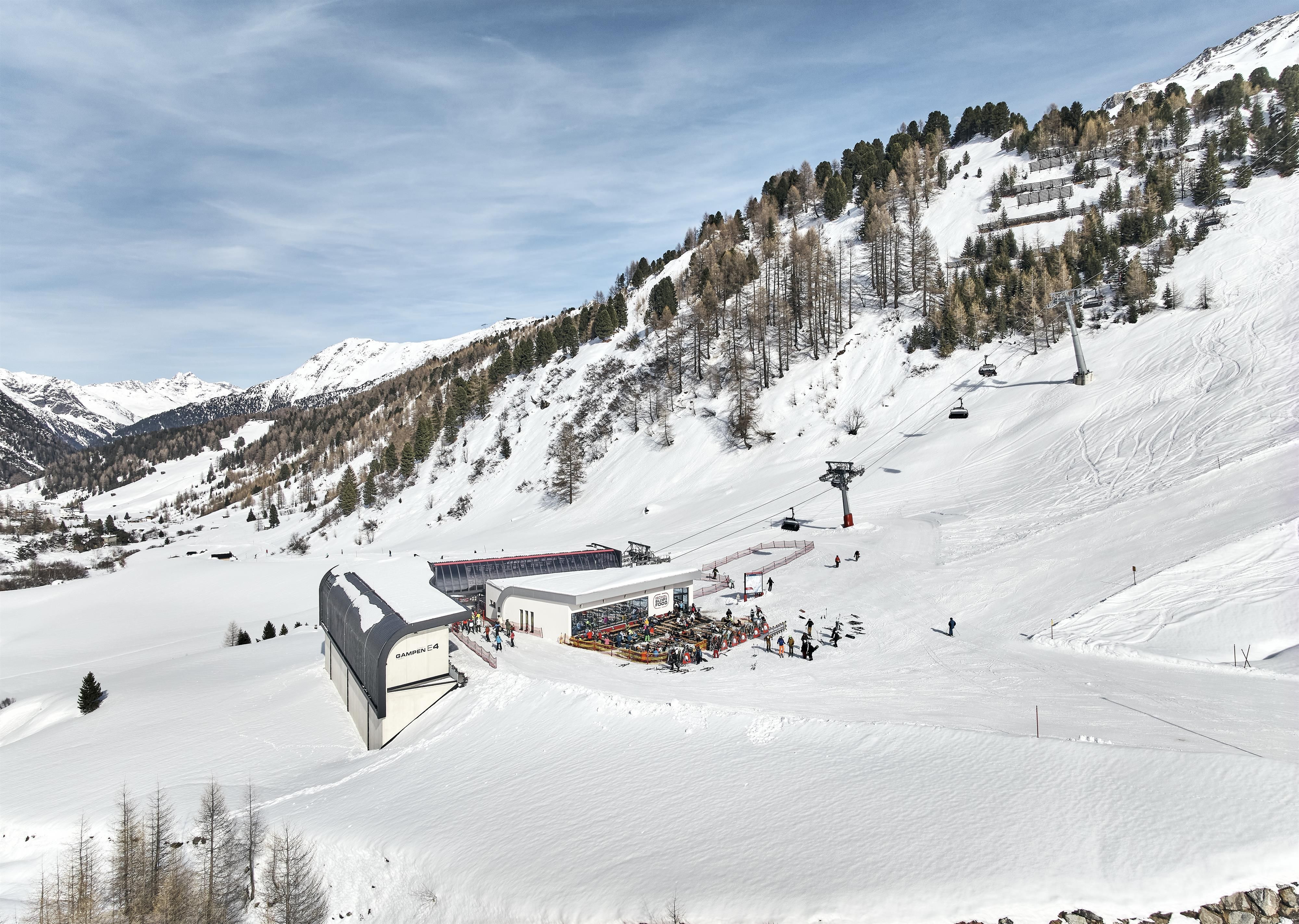 It’s located right at the valley station of the new Gampenbahn (E4) chair lift and it’s the perfect spot for a little snack between meals. And for all those who would like to eat in style and then quickly head back onto the slopes of the ski resort.