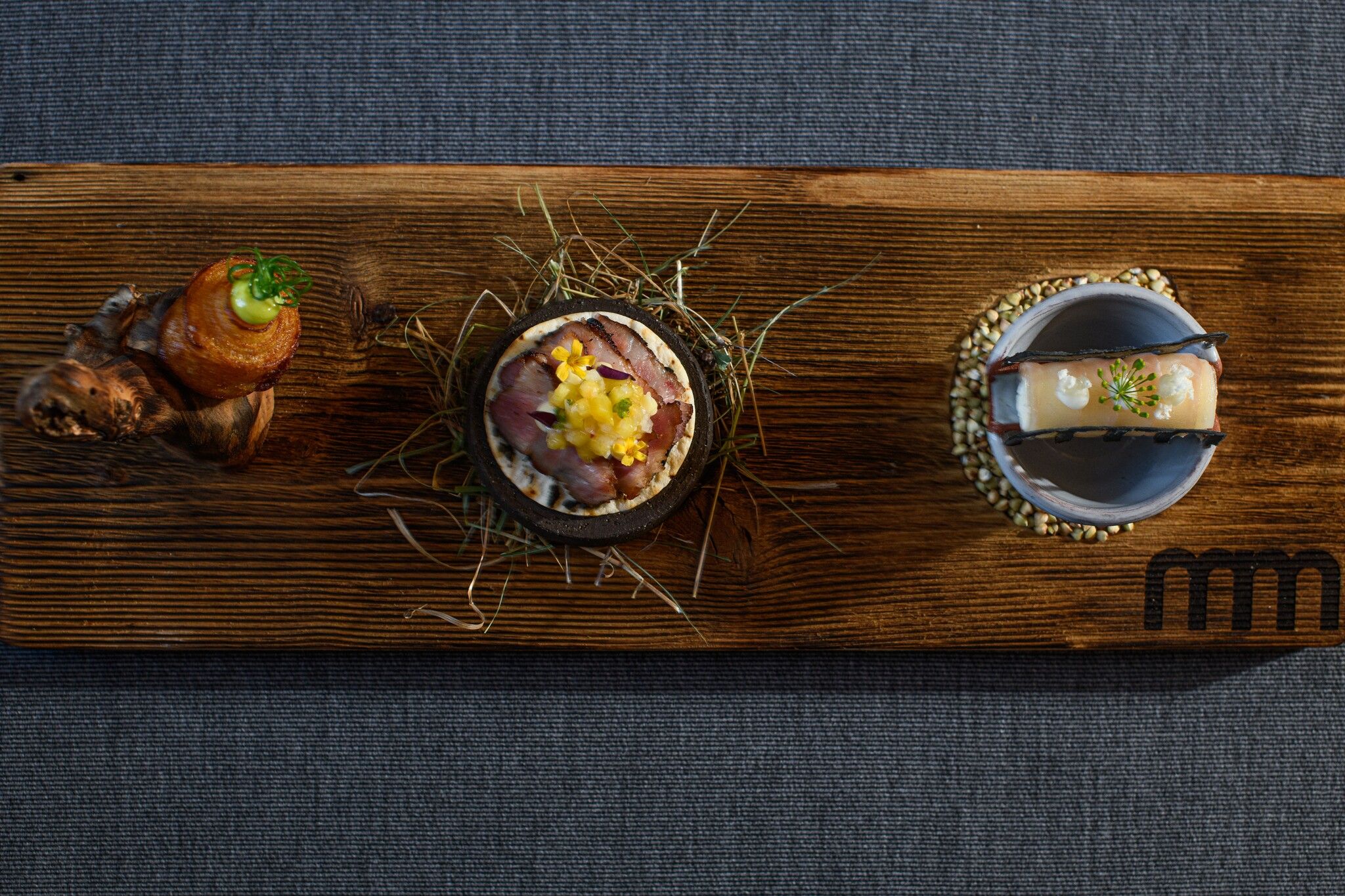 We, Michi Ploner, Olli Mijic and Jürgen Mathoy, with the support of our team and the two chefs Philipp Stohner and Peter Netzer, offer you surprise menu of 13 different dishes.