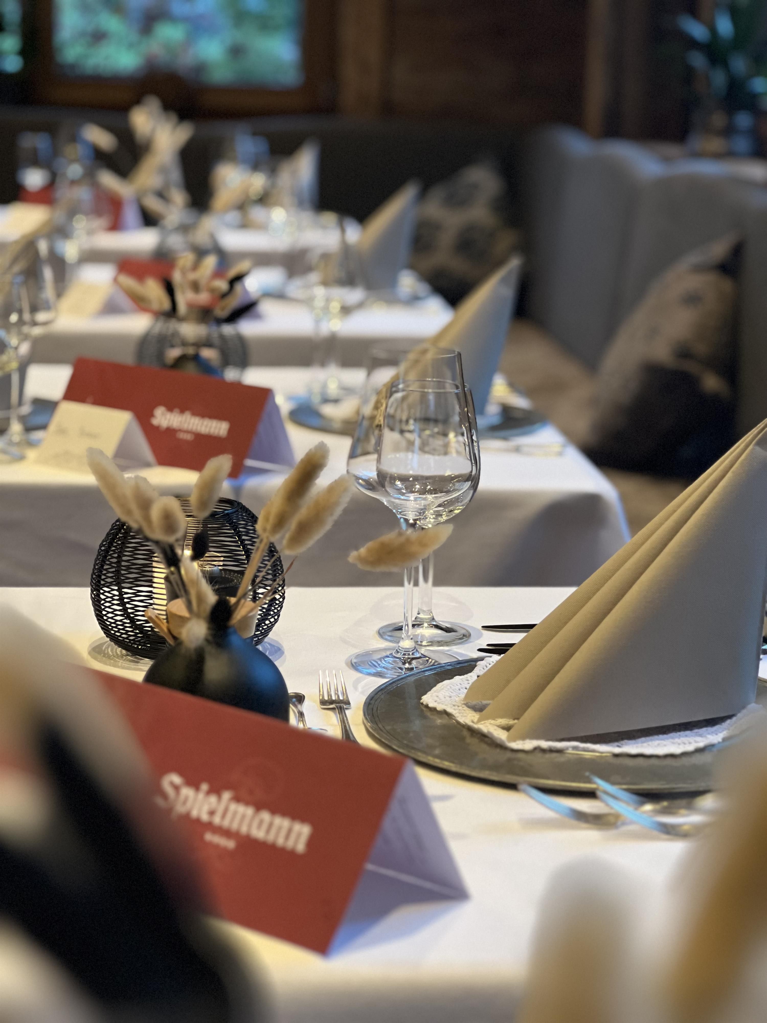 The restaurant in Hotel Spielmann combines authentic Tyrolean enjoyment tradition and modern accents in a relaxed atmosphere with a view of the surrounding mountain world around the Zugspitze. Guests can enjoy à la carte cuisine with high-quality ingredients from the region, inspired by family recipes and refined with herbs from the hotel's own garden, in cozy dining rooms and on the sunny terrace. Occasionally, barbecues are held on the terrace in summer, and in autumn, roasted chestnuts are traditionally enjoyed. On Sundays, there is an elegant gala dinner. Vegetarian, vegan, and allergen-friendly dishes are, of course, available.