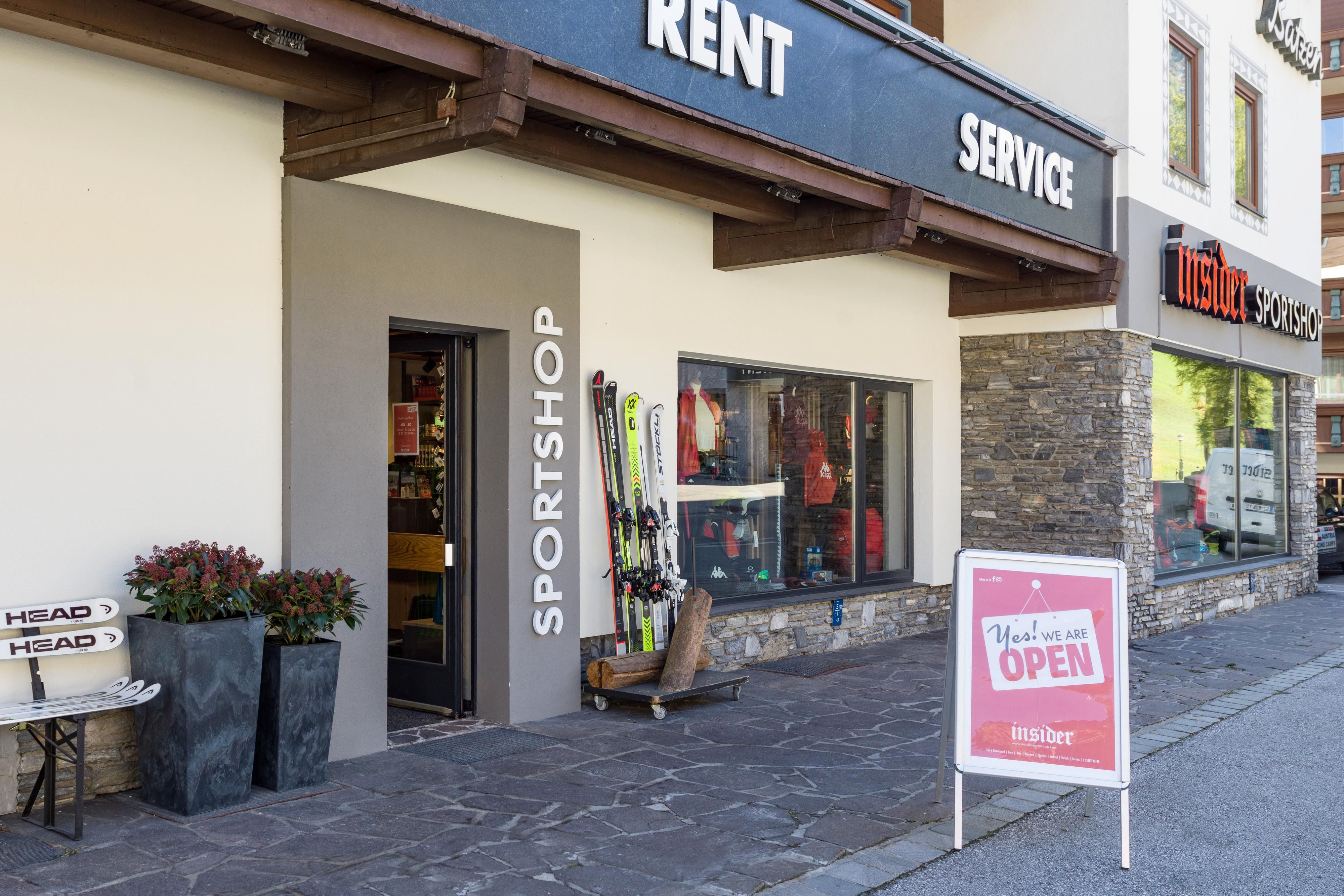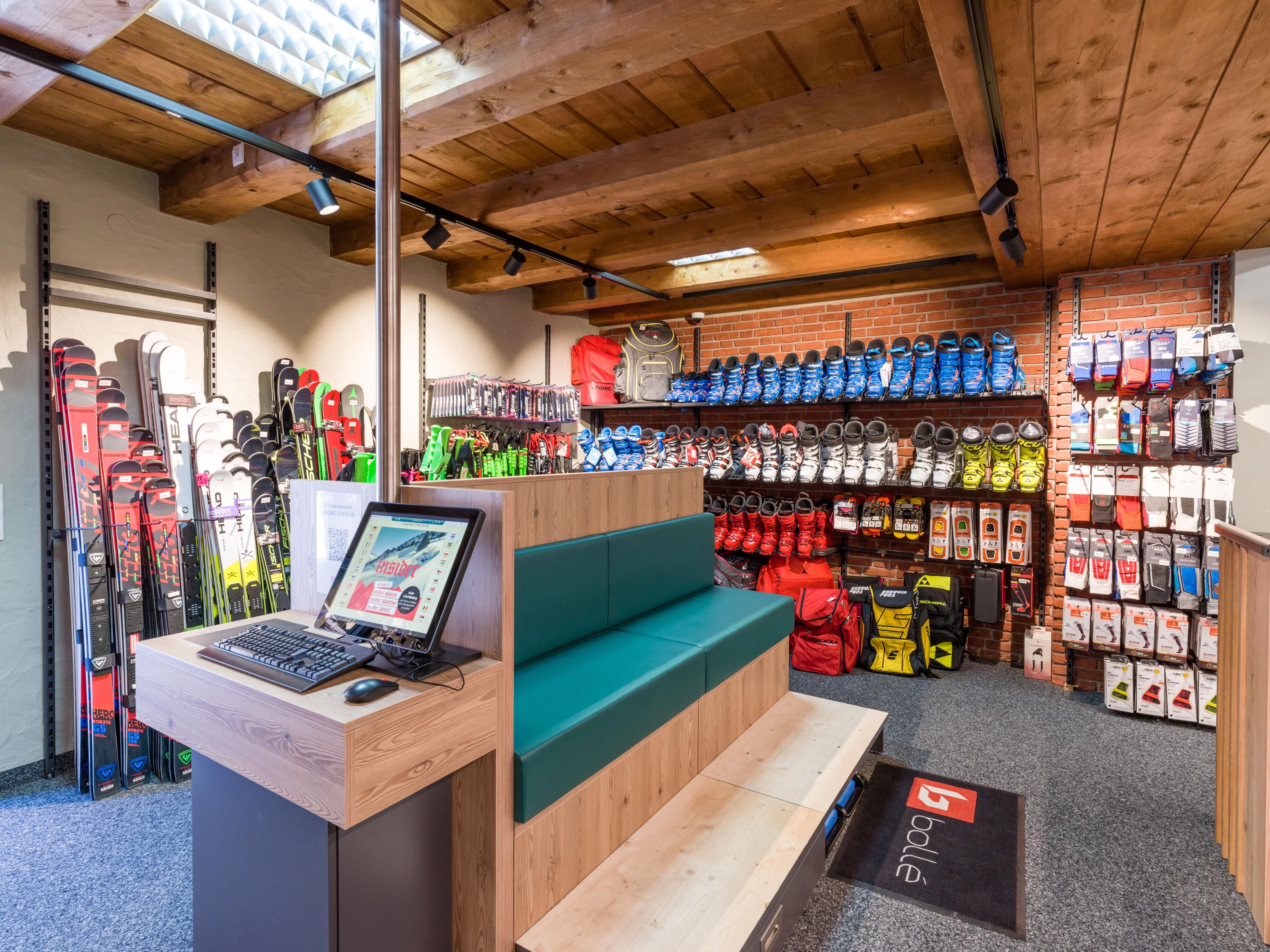 Certainly we do as well offer the Insider-Basics: ski rental, skiservice (also express service), bootfitting and sports- and leisure fashion plus essential accessories - from snow goggles to body protection.