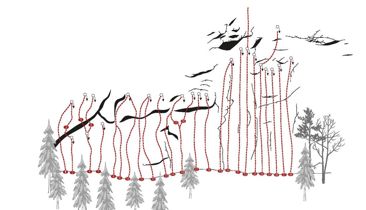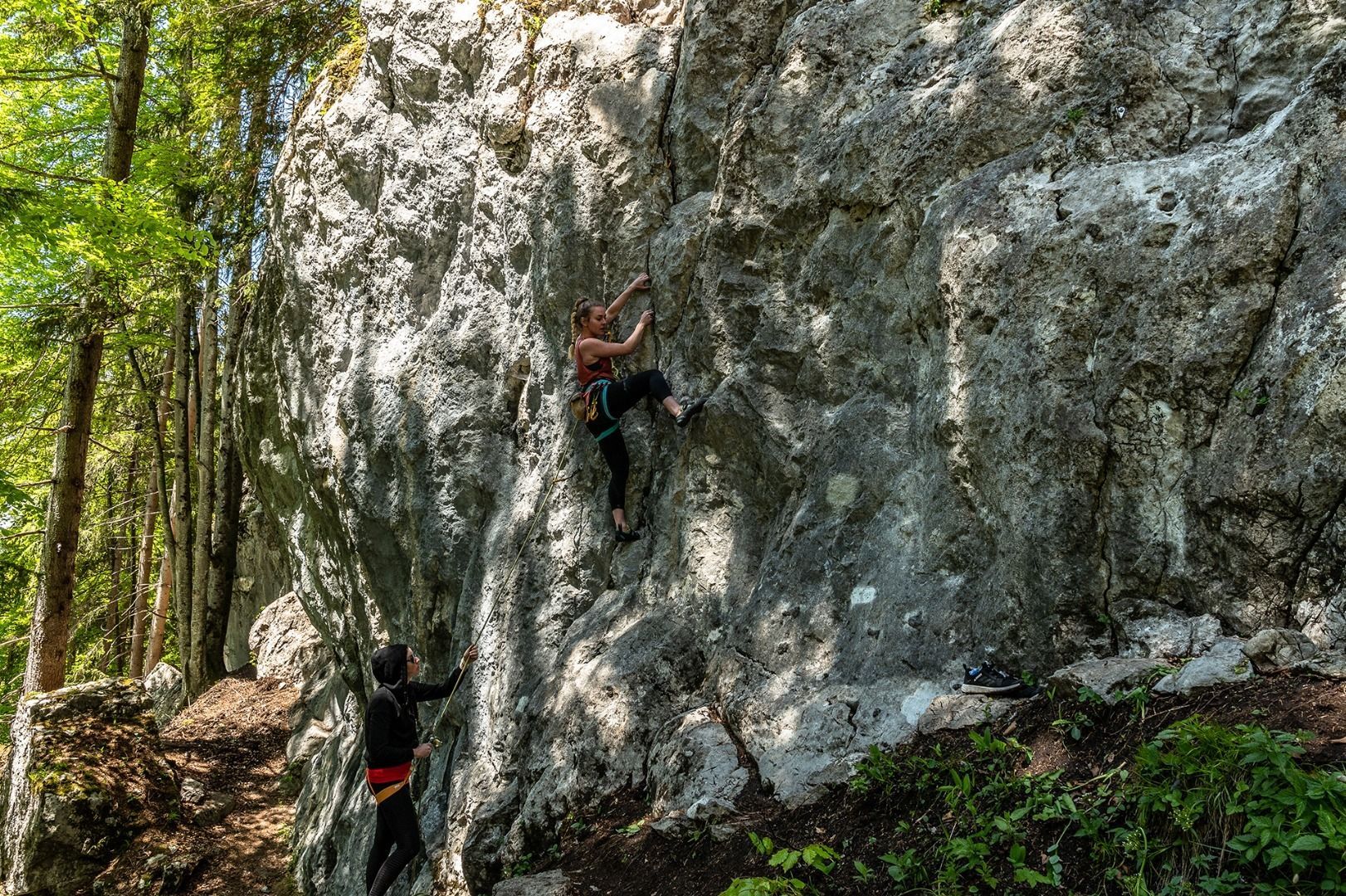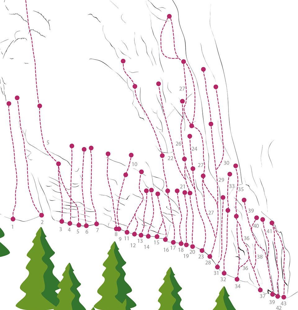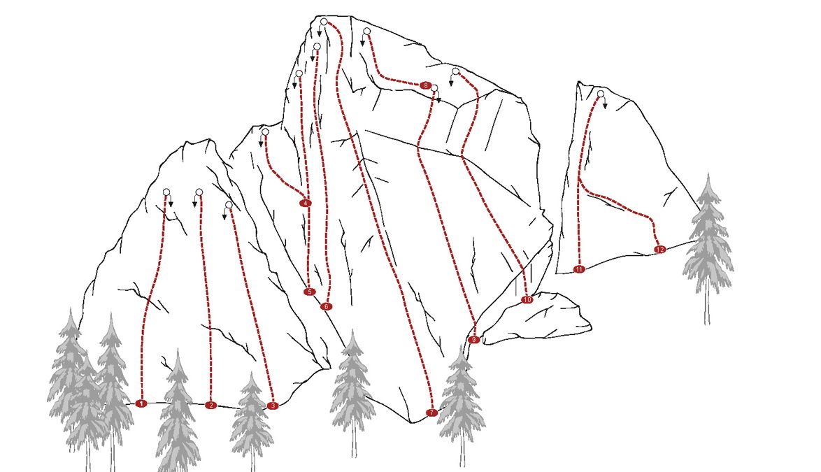 Sport climbing routes are at a maximum height of 25-30 metres, so that a long rope is sufficient for climbing up and lowering. Alpine climbing is usually referred to as multi-pitch routes. This involves climbing a route with several pitches, setting up belays in between and sometimes abseiling down at the end.