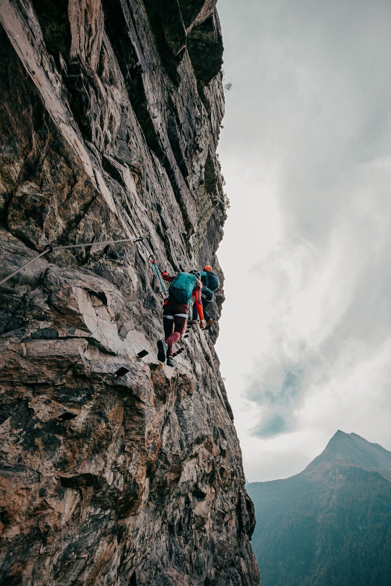 A very difficult via ferrata, beautifully exposed and built into the vertical wall. There are sufficiently enough footholds and 2 resting areas.