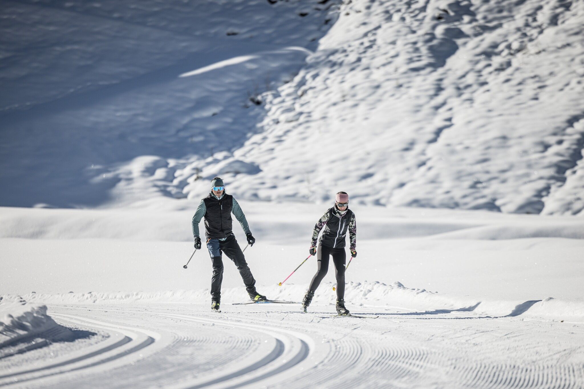 Fantastic cross-country ski track in the snow-covered Gerlos side valley.