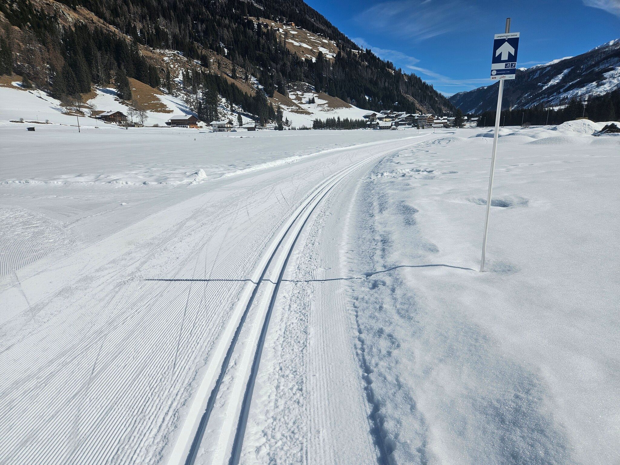 The sunny slope is ideal for your first exploratory cross-country skiing tour. The circuit course starts at the junction for the Hotel Alpenhof and proceeds across pastureland to the north of Deferegger federal road.