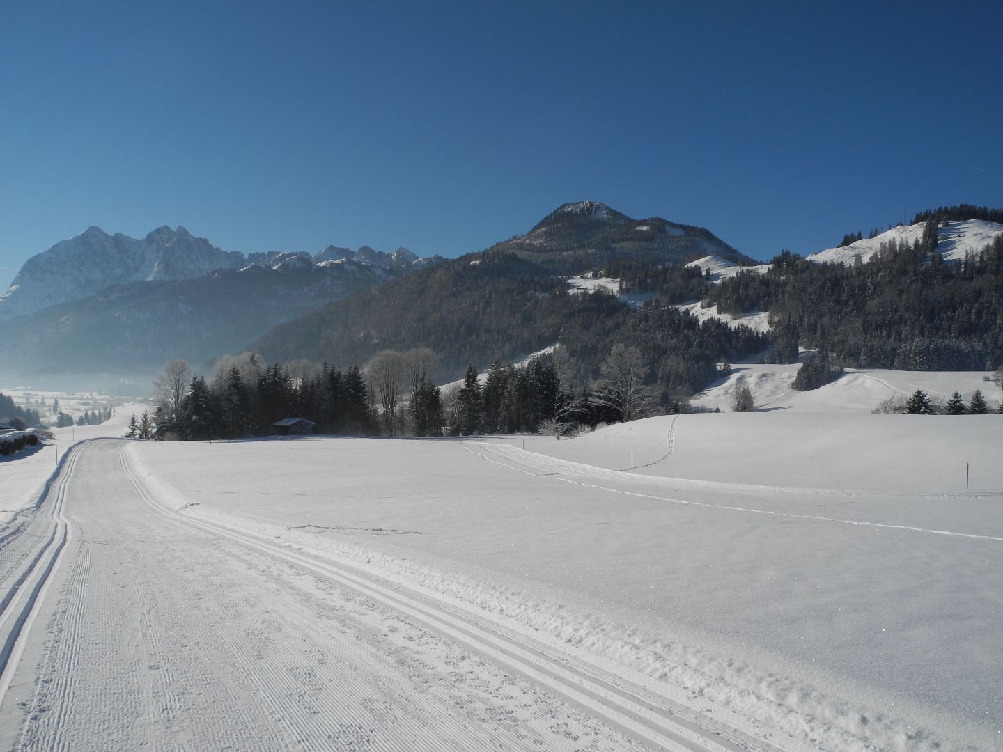 Access at the Schwendt cross-country centre. Sporty cross-country trails with a few ascents and descents. Magnificent views of the Wilder Kaiser.