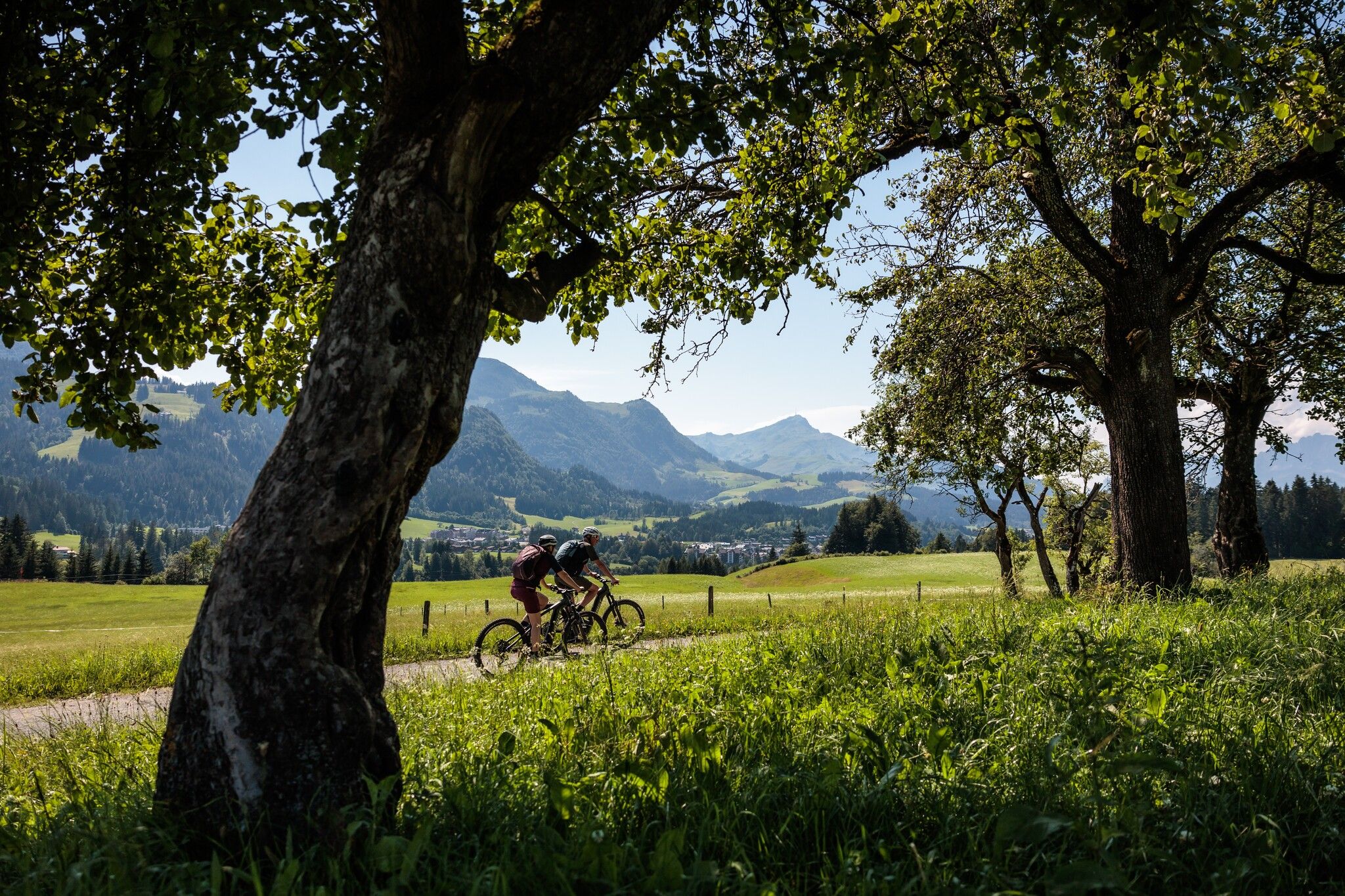 We start through the center of the tranquil town of Oberndorf and ride hilly towards Rerobichl. You took some time to explore Oberndorf in the evening anyway, right? If not, you should admire the world's largest wooden fountain at the Müllnerbauer before you leave! By the way, this also has a very nice farm store! Schörgerer also have a very worthwhile farm store, if you want to buy a regional snack 😉.