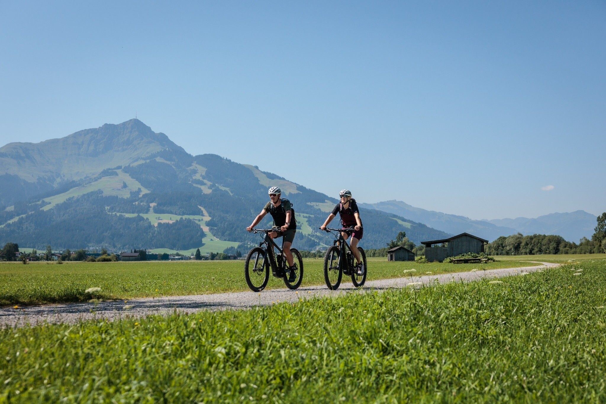 Now let's go, we still have a long day waiting for us! A landscape lined with farms greets us and we slowly cycle towards the Wilder Kaiser. Before we cycle downhill into the next valley we turn right to do a loop around Bichlach and ride towards Sperten.