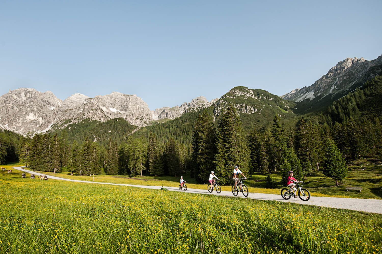 A total of 1,200 metres of elevation gain awaits on this bike trip to Sennjoch or Kreuzjoch at more than 2,000 metres above sea level. Below Zirmachalm the trek gets really steep. However, there are plenty of mountain lodges for a pick-me-up along the way. For a great photo op, stop at Panorama lake, which reflects the mighty Kalkkögel peaks. From Kreuzjoch, a small side trip by foot to the "StubaiBlick" lookout is well worth it.