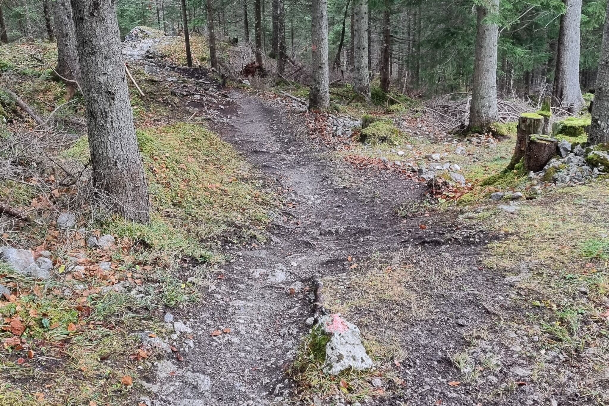The trail starts in the gravel bend of MTB route 835 at approx. 1480m and crosses the Mure.