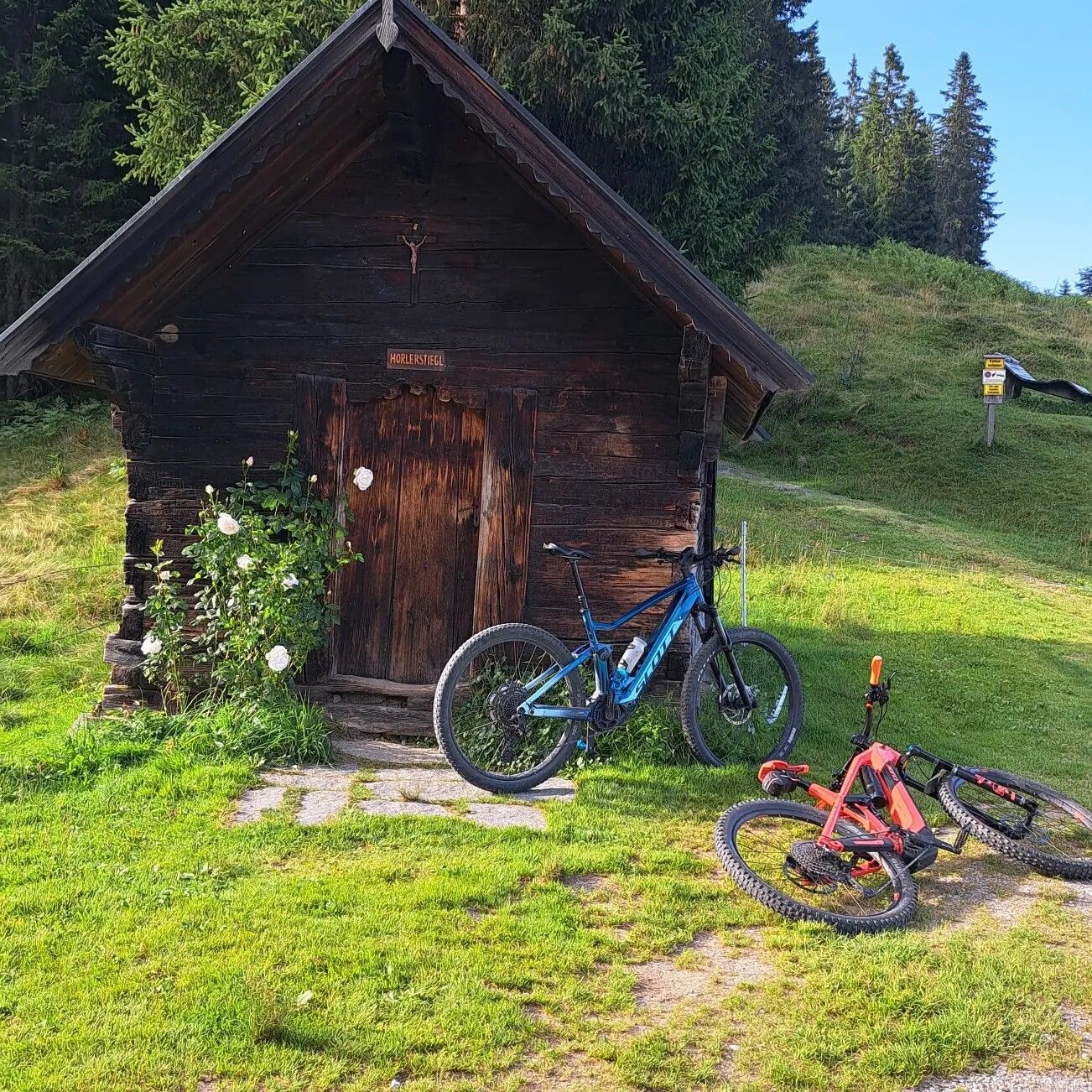From Holzalm, continue to Horlerstiegl (an old chapel) and from here, ride 6 km downhill on Sonnberg to Auffach (don't miss the turn-off to the left/Auffach!). A few meters further on is the Schatzbergbahn cable car, which saves you from sweating your way up 900 m.