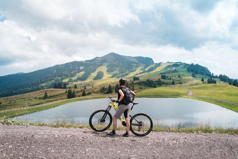 From the mountain station of the Steinplatte gondola lift, ride down along the asphalt road towards Möseralm. There, keep going in the direction of Unken before turning left towards Winklmoosalm at the "Tanzanger" junction. From there you descend on a road in the direction of Reit im Winkl. Via Erpfendorf and cycle path no. 18 Kalksteinrunde you return to Waidring.