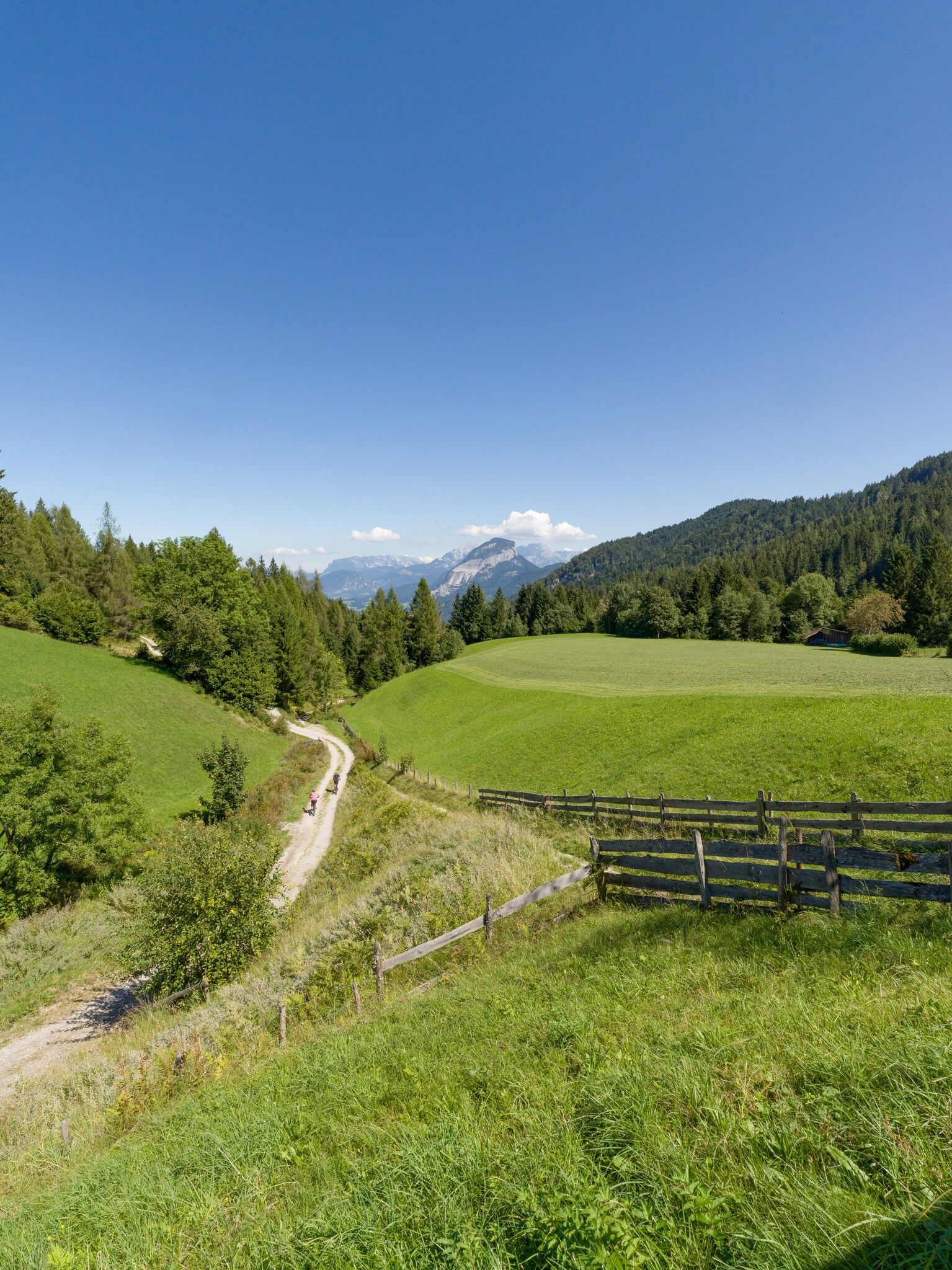 In Wörgl, the trail passes the Filz (a small moor area) and the shopping center, then crosses the main road to the other side onto the Inntal cycle path. It’s just under 5 easy kilometres to Kundl, and another 2 km to the ascent onto the Saulueg plateau. This is also the entrance to the Kundler Klamm. In the past, the road was open to public traffic, but today cyclists may only ride as far as the guesthouse.