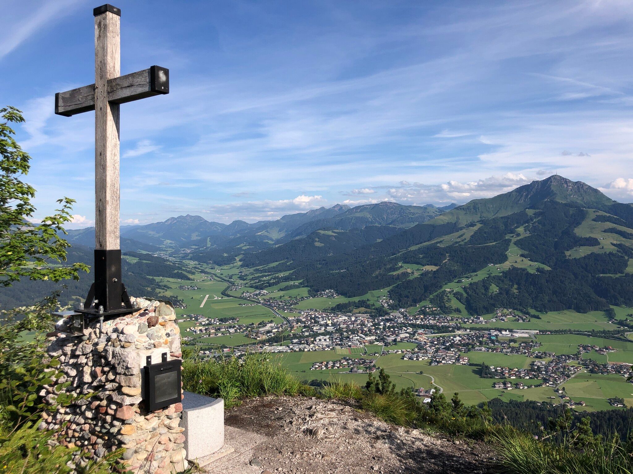 The Spießnägel (1,880 m) offers a wonderful circular tour with views of the Grosser Rettenstein, while the Kalkstein/Baumooskogel (1,506 m) scores points with its location between the Wilder Kaiser, Kitzbüheler Horn and the Loferer Steinberge. The Spitzstein (1,598 m) is a great viewing summit with views from the Alpine foothills to the Hohe Tauern. The Gscheuerkopf/Ursulakreuz (1,280 m) entices with an adventurous tour via alpine paths and sights such as the Gmailkapelle chapel. Finally, the Koflerjoch (1,863 m) offers impressive views of the Lechtal Alps, the Tannheim mountains and the Zugspitze, as well as a place to stop for refreshments and a swim at the Urisee lake.