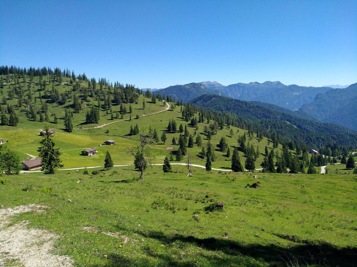 Comfortable circular hike with impressive panorama, paths through forest and pasture, and resting opportunities in the beautiful alpine pasture area.