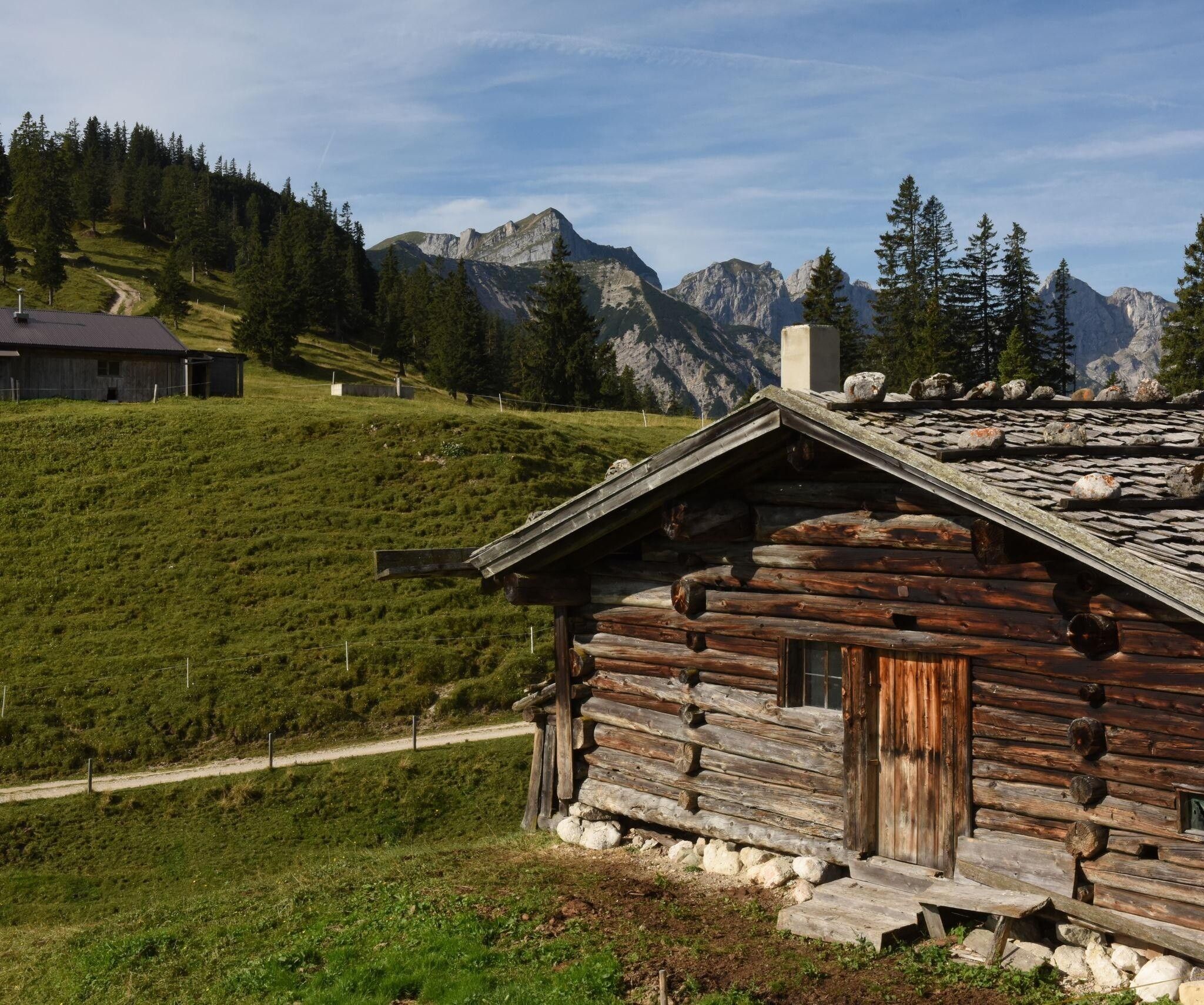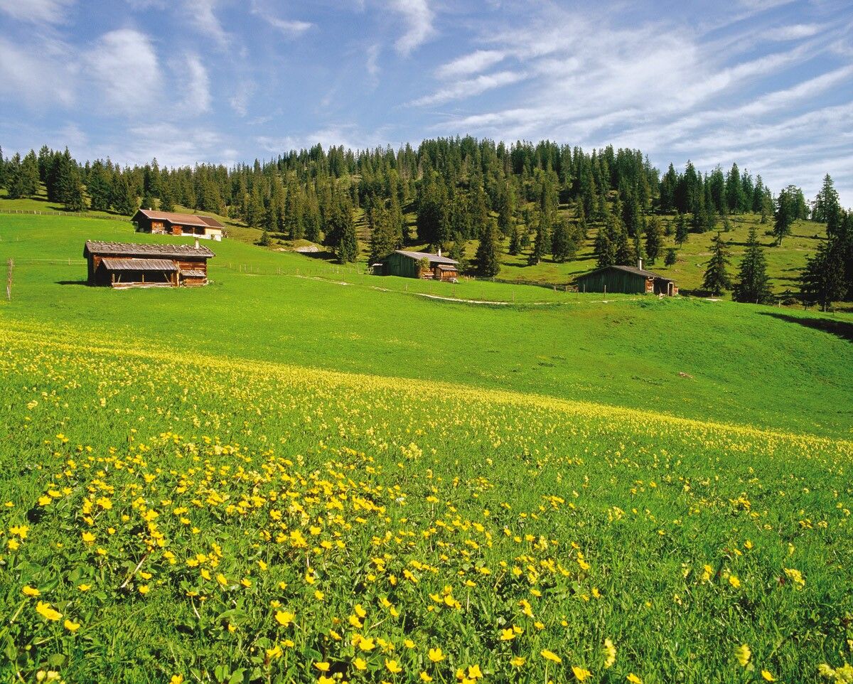 The alpine pasture hike starts directly at the Wimm farm in Brandenberg (district Aschau). The circular hike leads right over a forest path about 150 meters ascent comfortably towards Wimmerjoch / Wimmeralm uphill. As a reward for the first climb, an impressive panorama awaits you of the Guffert amid the Brandenberg Alps. Shortly after the Wimmeralm, the circular route continues towards Eilalm. From there, you reach the dining option Anderl's Alm hut via a forest road.