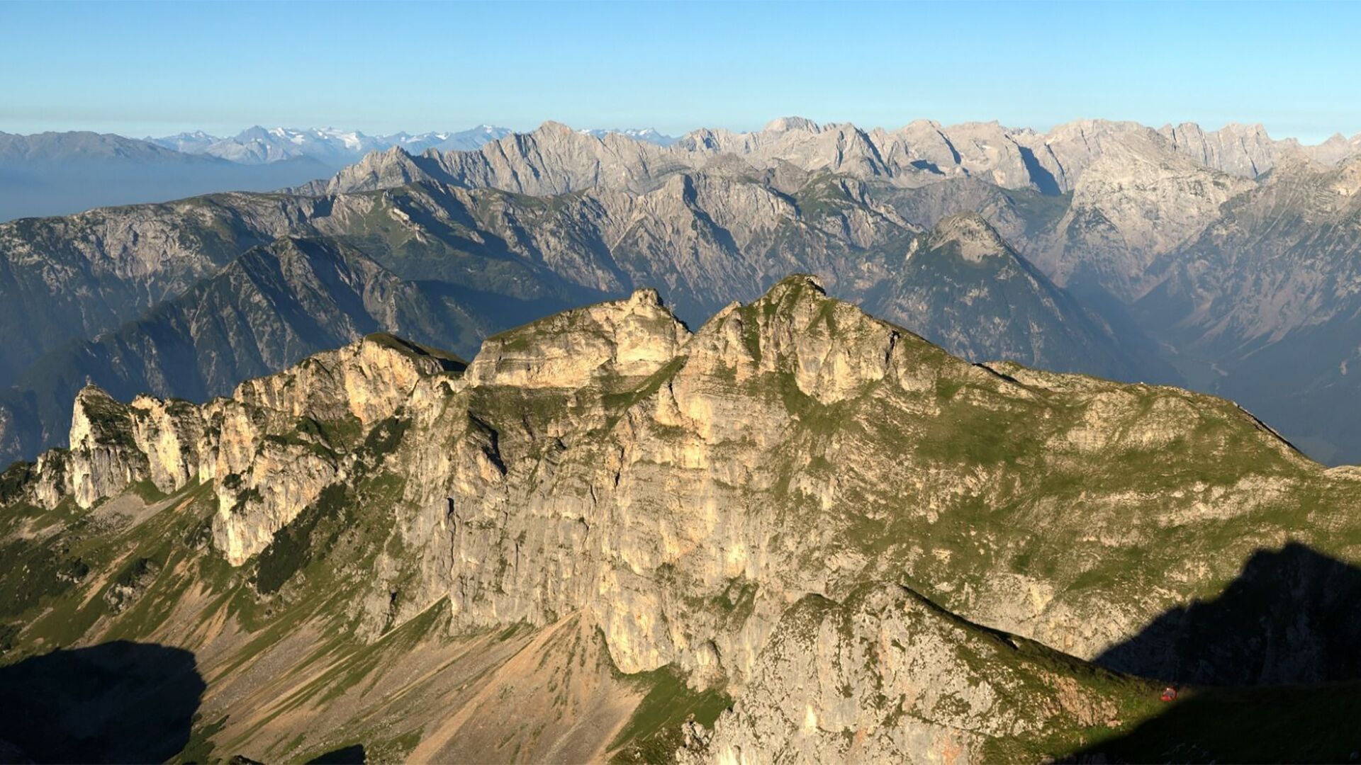 From the top station of the Rofan cable car, walk in the direction of the Dalfaz Alm. About halfway to the mountain hut, a signposted trail branches off to the Rotspitz. After a short detour to the summit of the Rotspitz (2,067 metres), follow the trail on the crest of the Dalfaz walls along the ridge. From the Streichkopf (2.243 metres), the trail leads via the Rote Kamml (secured with ropes) to the summit of the Hochiss (2,299 metres). From here, take the direct route back to the Rofan cable car.