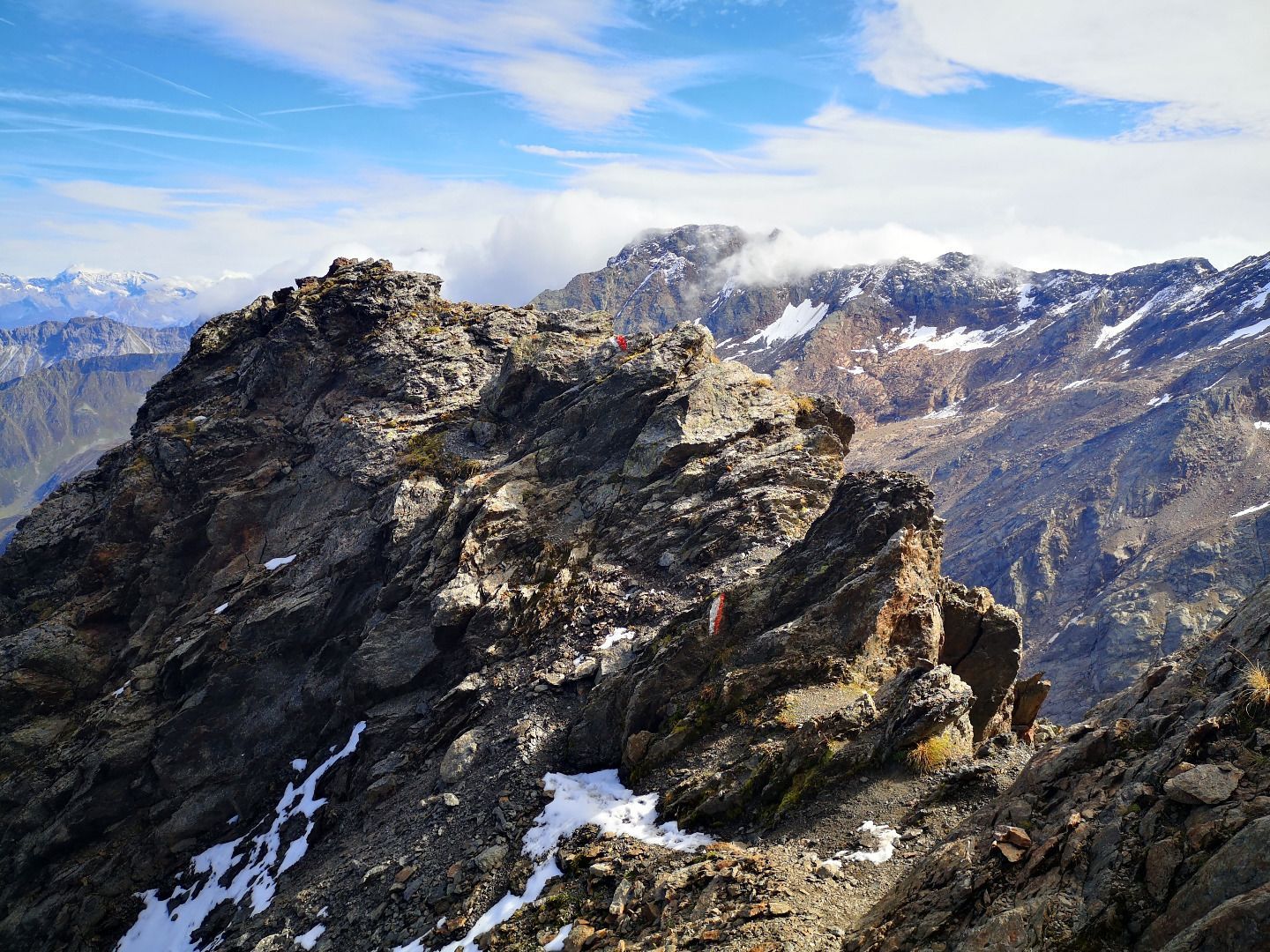 Challenging day tour in the middle of the Stubai mountains to the 3054m high Wetterspitze near the Bremerhütte. Impressive views of the Feuerstein, Wilder Freiger and Zuckerhüttl glaciers as well as easy climbing passages make the ascent a very special experience. At the top, a wonderful panoramic view awaits you in a lonely ambience.