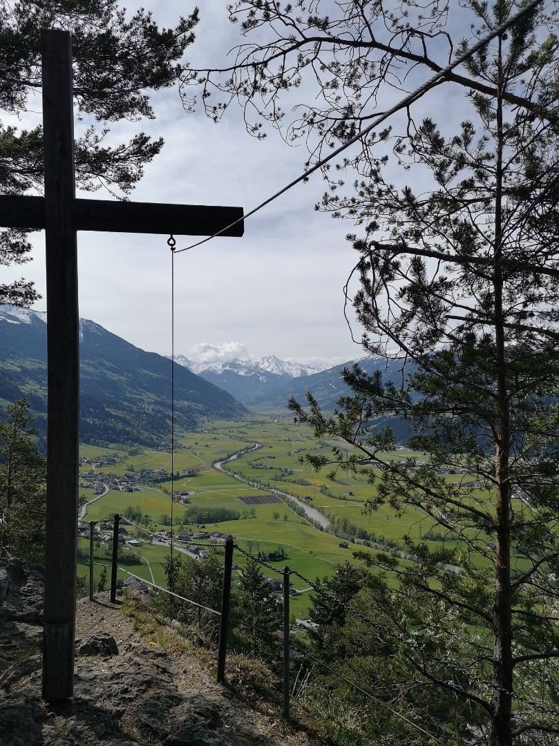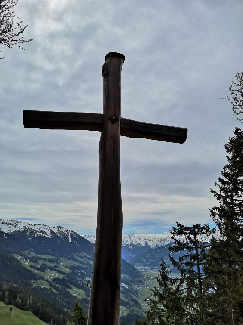 Head to the left of the Municipal office, complete a gentle ascent up to Dorfstraße, and then cross this road. When you reach the signpost, head uphill and to the left; after passing the last of the houses, take the forestry road towards the Spitzerköpfl. Turn right and head uphill along the many bends – some of which are very steep – until you reach the rocky peak. Tip: Take a detour (via a short trail secured with ropes) to the Spitzerköpfl summit cross and enjoy the wonderful views of the Zillertal valley). Keep following the hiking trail uphill until this merges with the forestry road. Keep to the right as you walk along the road for a short distance, then turn left
