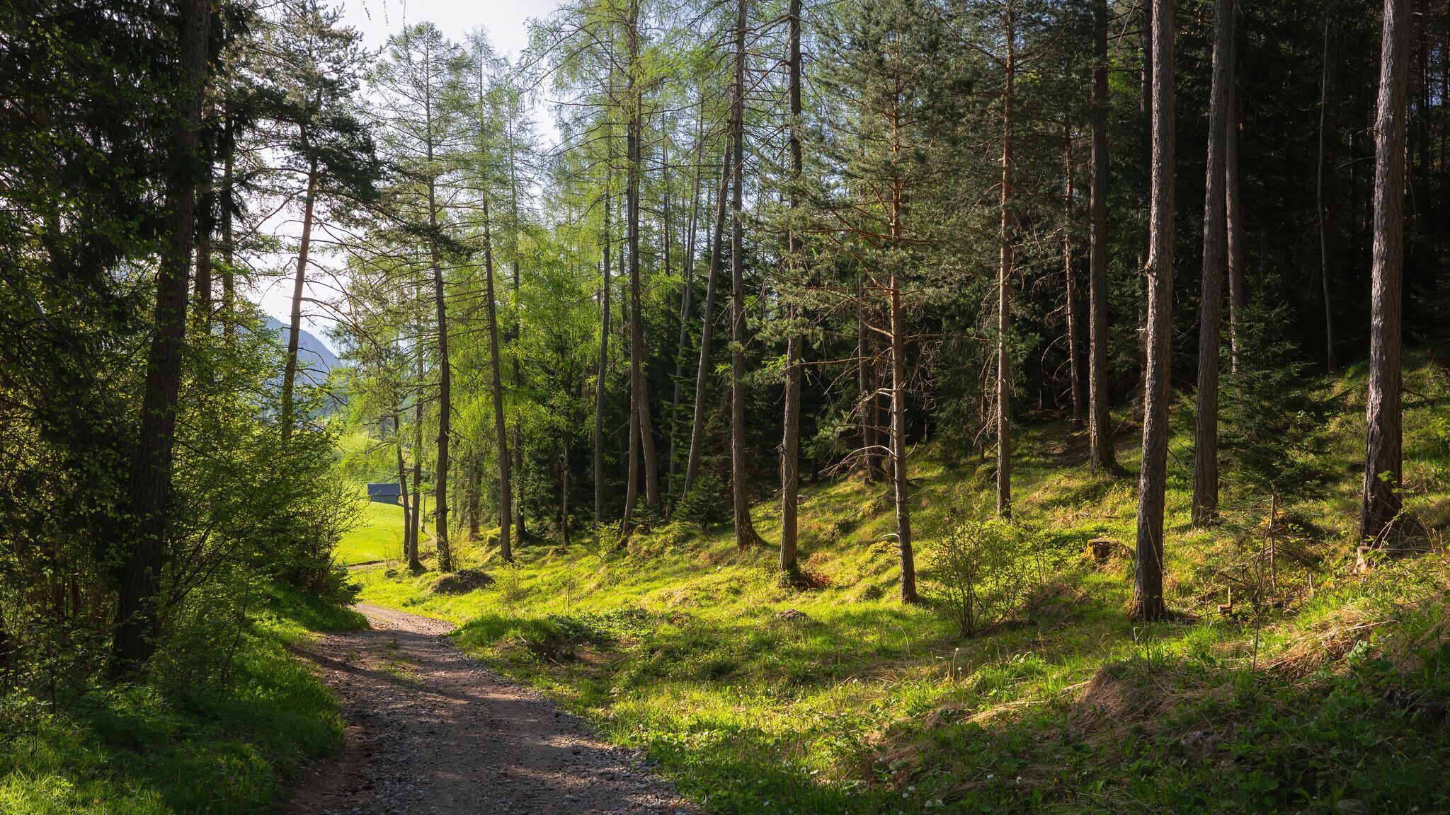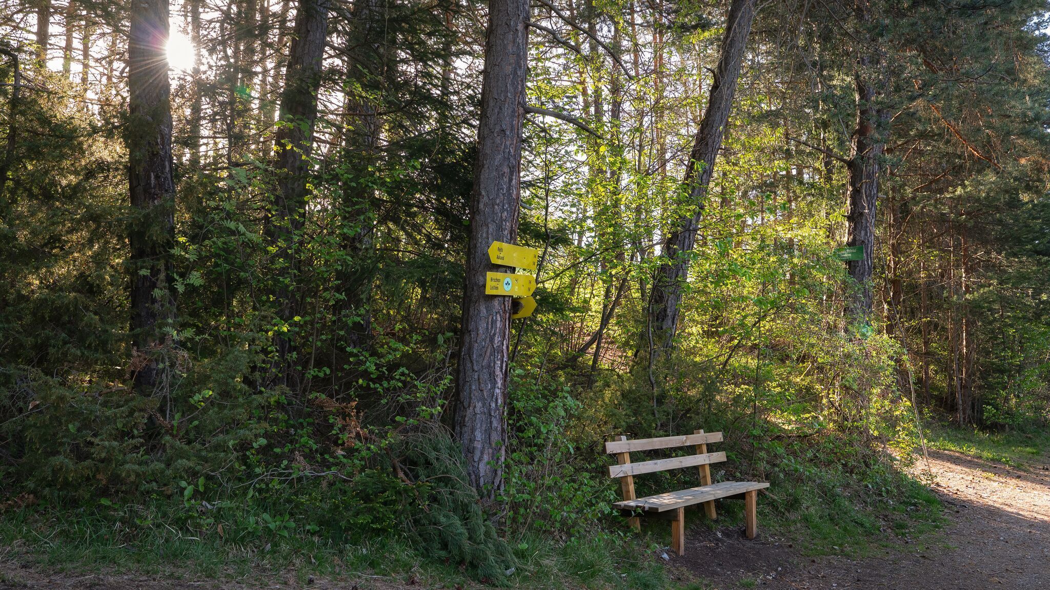 After crossing the main road, the hike continues along Leithener Wiesenweg, which gradually turns into a gravel path. The forest road, running parallel to the highway, eventually brings the trail back into Reith.