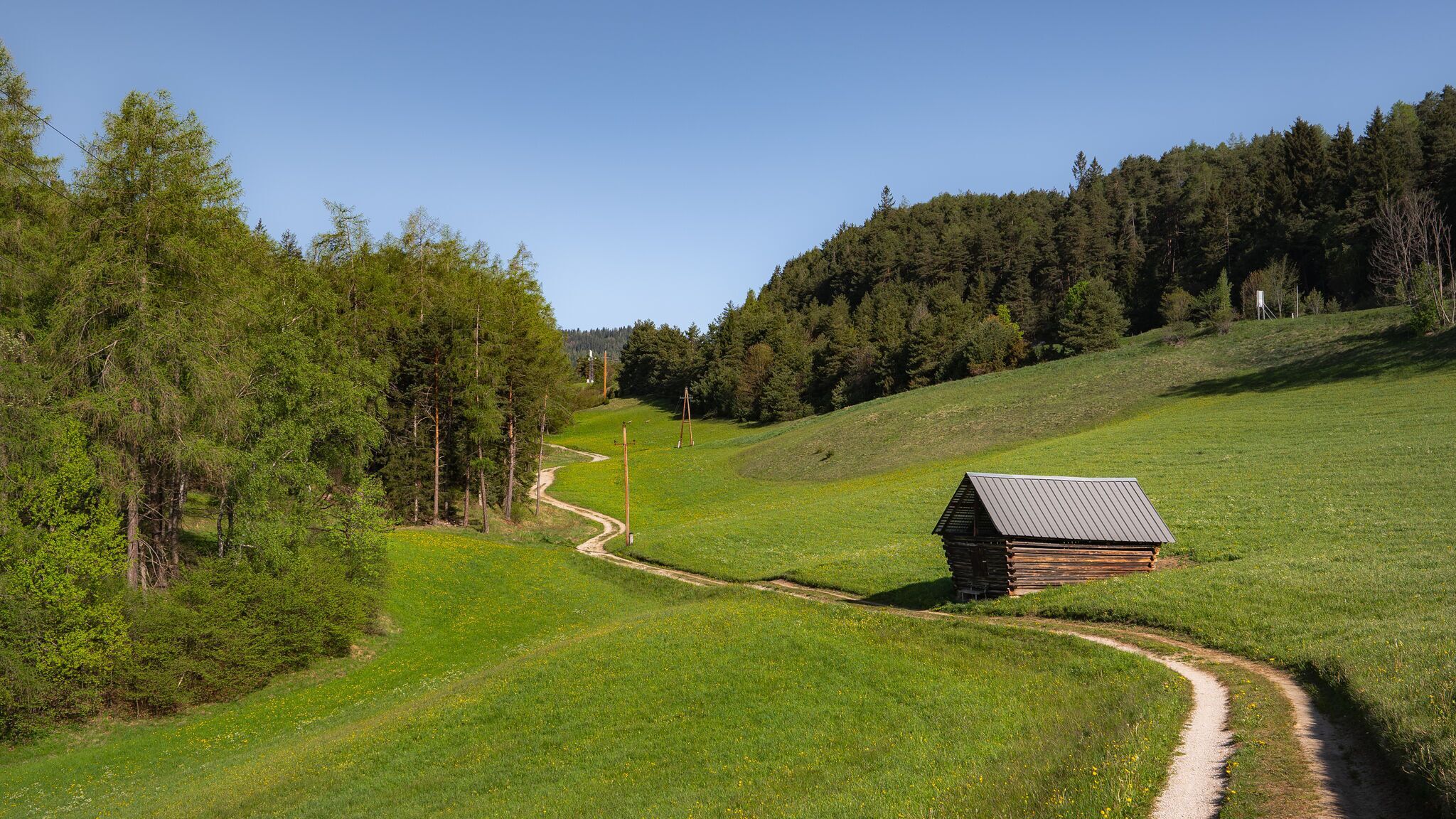 The trail soon leaves the asphalt behind and continues on a gravel path. Following the railway tracks on the right, the route leads to the ÖBB Leithen train stop. Here, the path turns right, passing through the underpass, then follows Kobesbichlweg downhill until it reaches the main road.