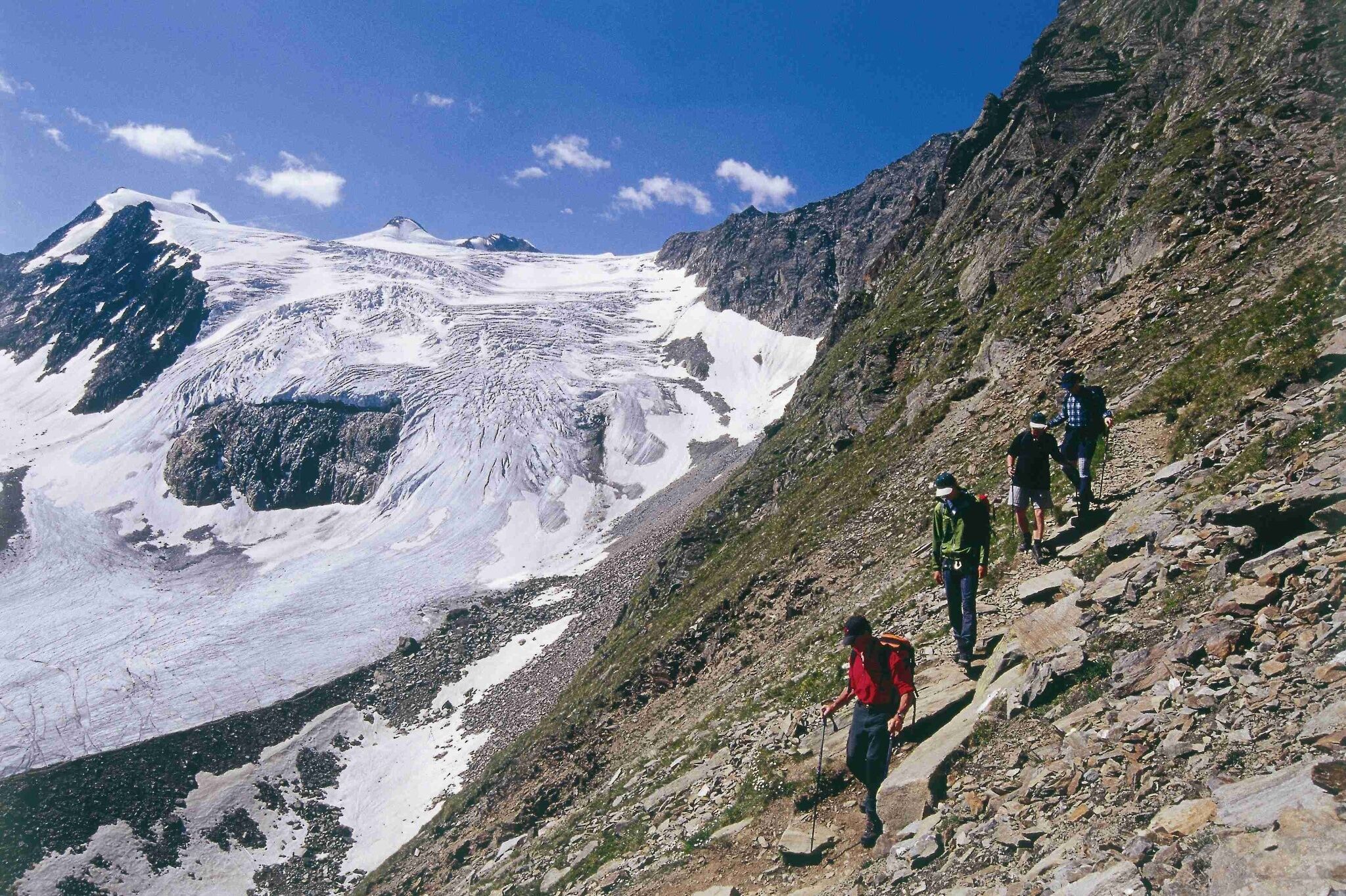 High-alpine mountain hike on steep paths that require surefootedness and a head for heights. At the summit you are face to face with the fascinating glacier world.