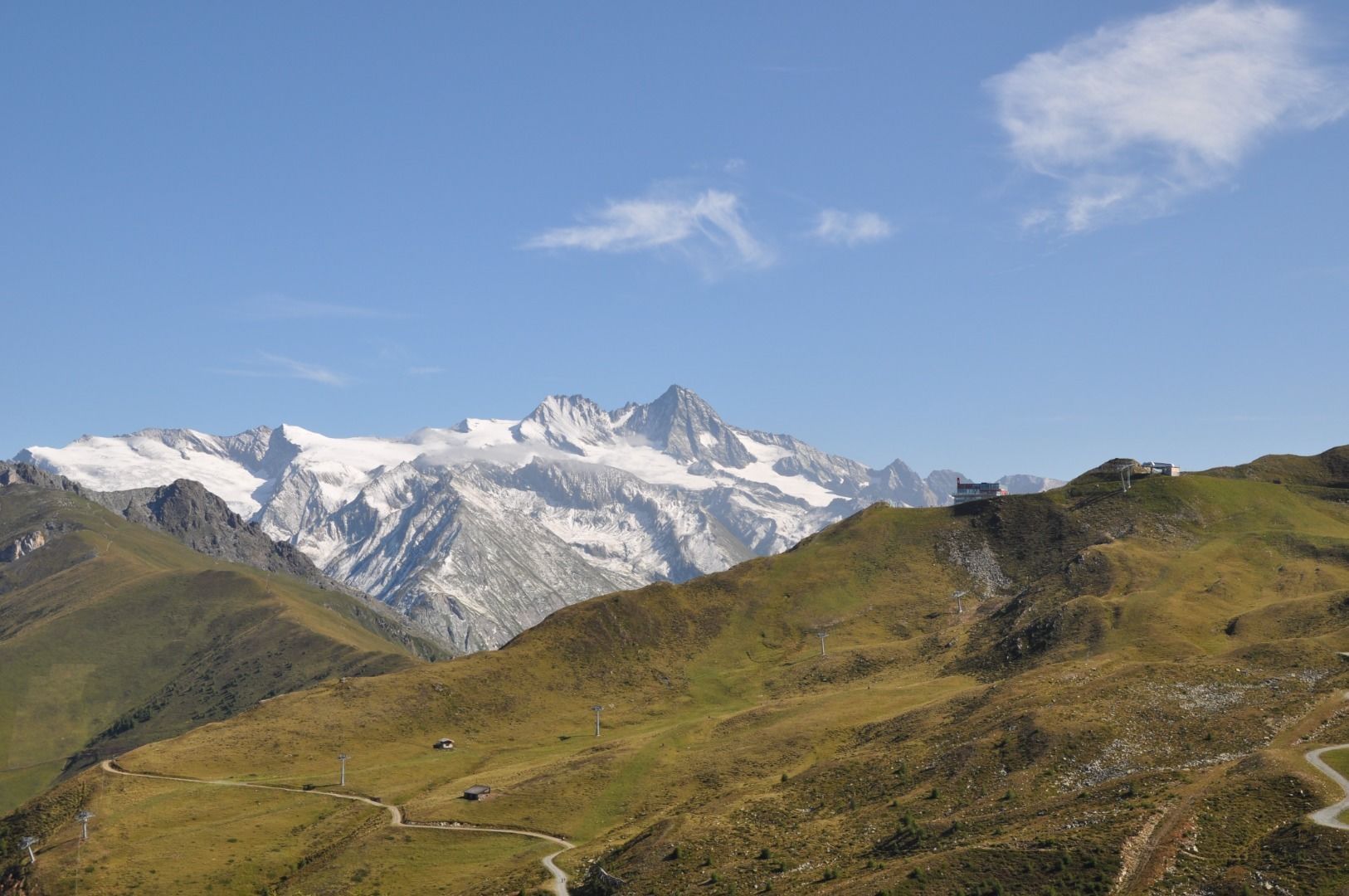 Start your hiking trip at the mountain station of the Kalser Bergbahn. There enthroned the Adlerlounge, on the ridge between Matrei in Osttirol and Kals am Großglockner. From the platform Adlerhorst, you can marvel at the Großglockner and another 60 three-thousand-meter peaks in all there glory.