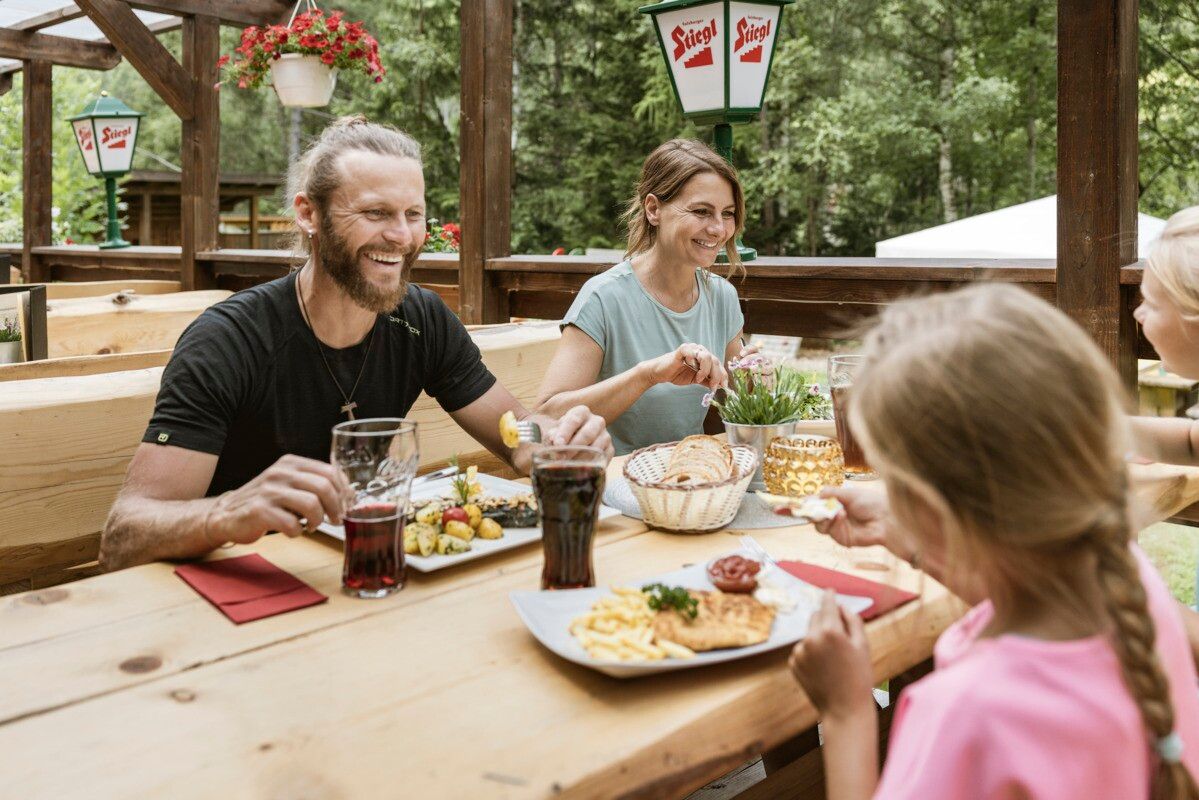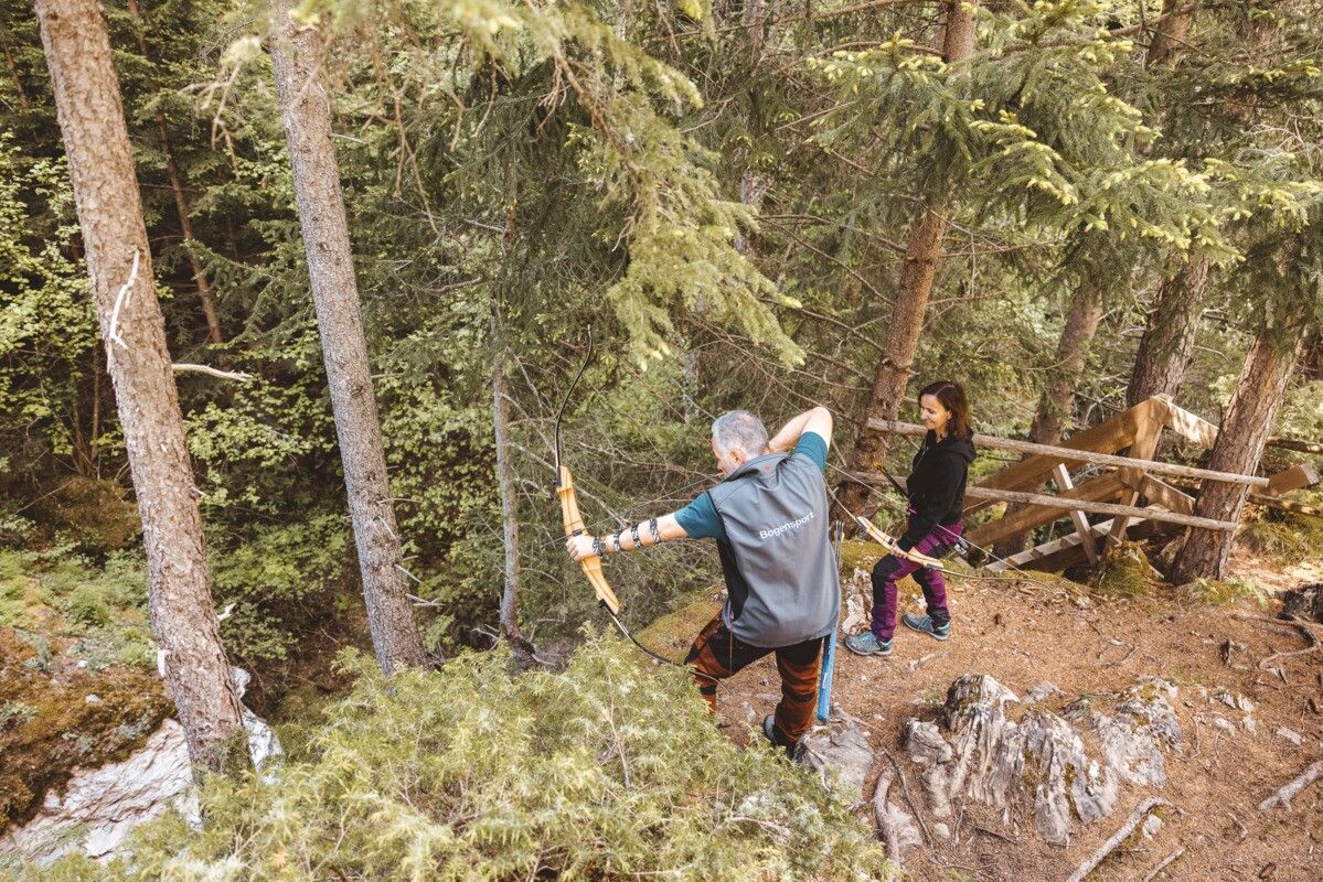 From the roundabout in the village, the route leads towards the Kajetan Bridge, passing the Inntrack pump track along the way. Continue upstream along the River Inn, pass the Kajetan Bridge, and soon reach Fischeralm, an ideal spot for a break and refreshments. From there, the trail continues towards the archery course. The return follows the same route back to the starting point.