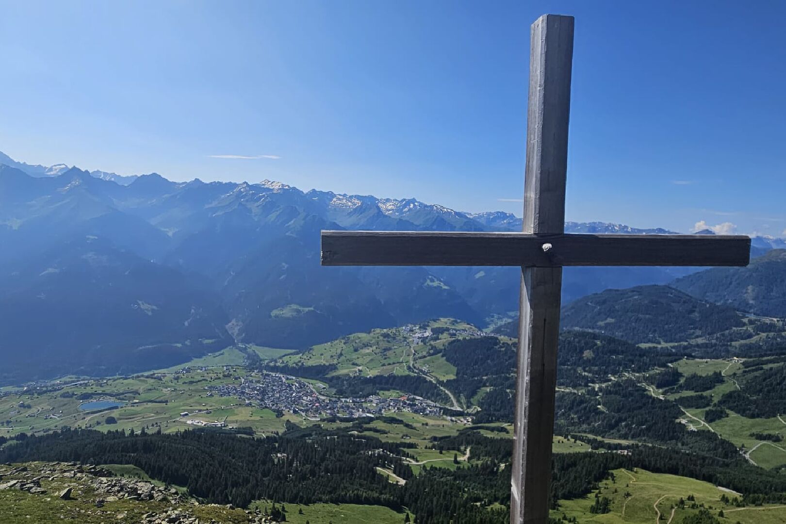 minutes to the Fisser Joch (F087) with its cablecar and restaurant. To the right, you go over the gentle wide ridge to the Schönjöchl summit cross (F079).