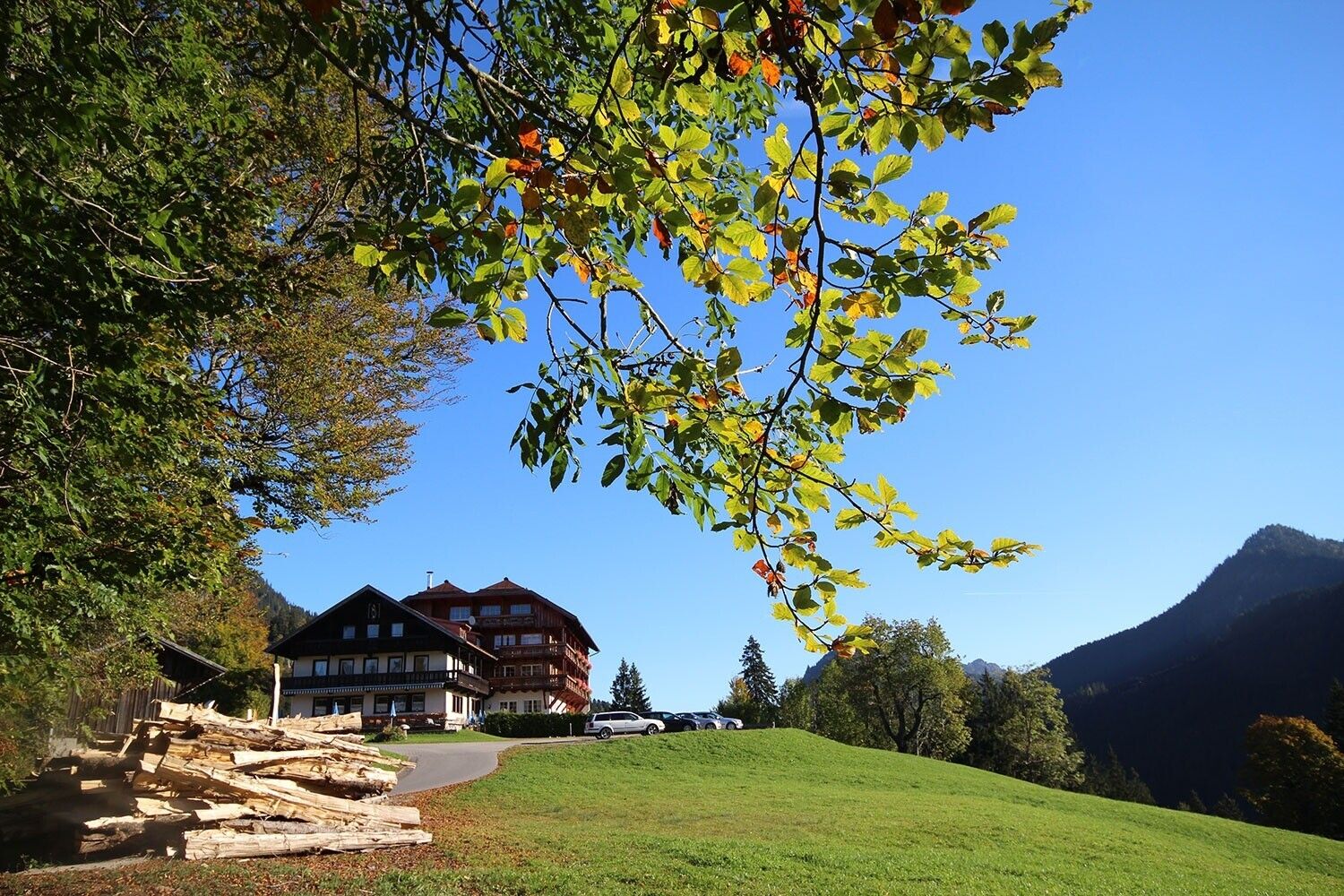 The starting point is the parking lot next to the church in Jungholz. From there, we walk past the Jungholz ski lifts and turn left onto the hiking trail towards Vorderer Sorgalpe. Passing by Sorgalpe, we continue towards Unterjoch. Through the town, always following the signs, we walk towards Schattwald. After about an hour, we reach the junction towards Hotel Rehbach. We follow this until we reach the final destination.Tip:
