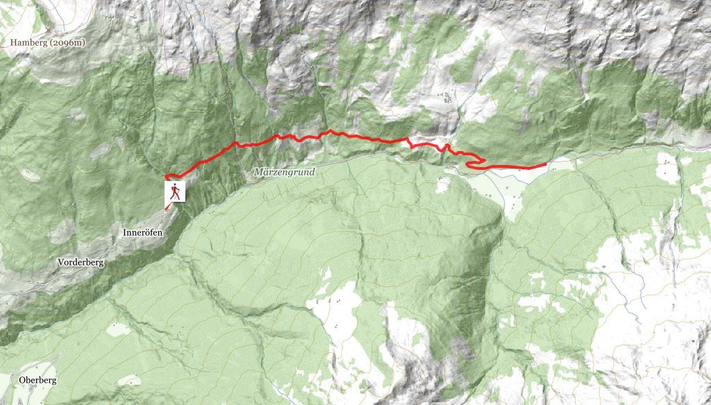 The route is along a short stretch of forest track from the Almluft Alpine café. After crossing the Steinbach (stream) the path leads through meadows to the Hochstadlalm, after which, and after crossing the stream, it forks left uphill and goes through the woods and across high alpine meadows to the Gmünd foresters’ hut. From there the path