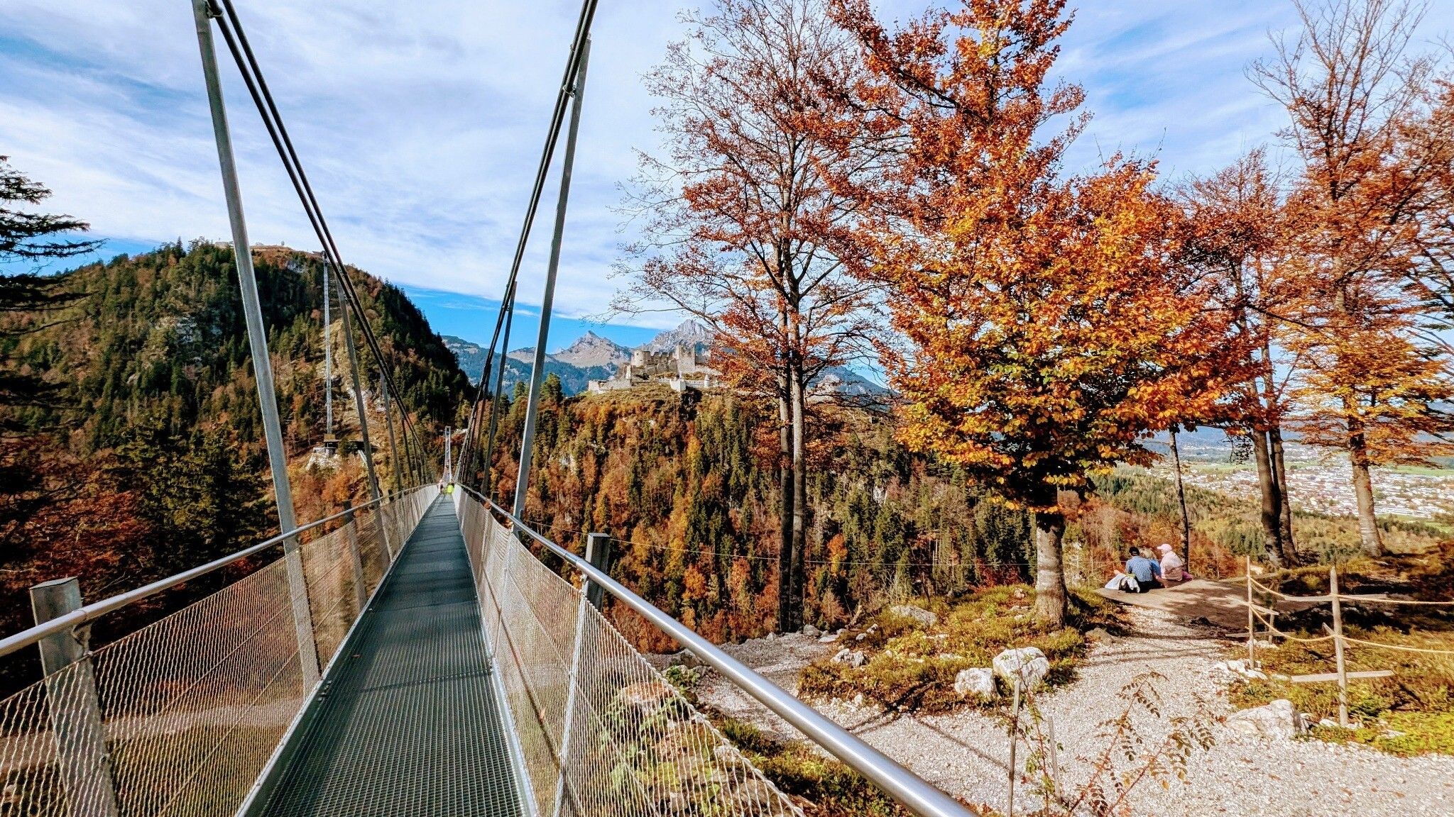 From the Ehrenberger Klause, take the well-surfaced path through the forest and the Schlossanger to the west portal of the highline179. If you have a head for heights, you can now cross the bridge. After leaving the bridge through the east portal, continue for about 100 metres to the photo point. From here, you have a perfect view of the spectacular pedestrian suspension bridge and Ehrenberg Castle on the opposite side of the valley. Return along the same route.