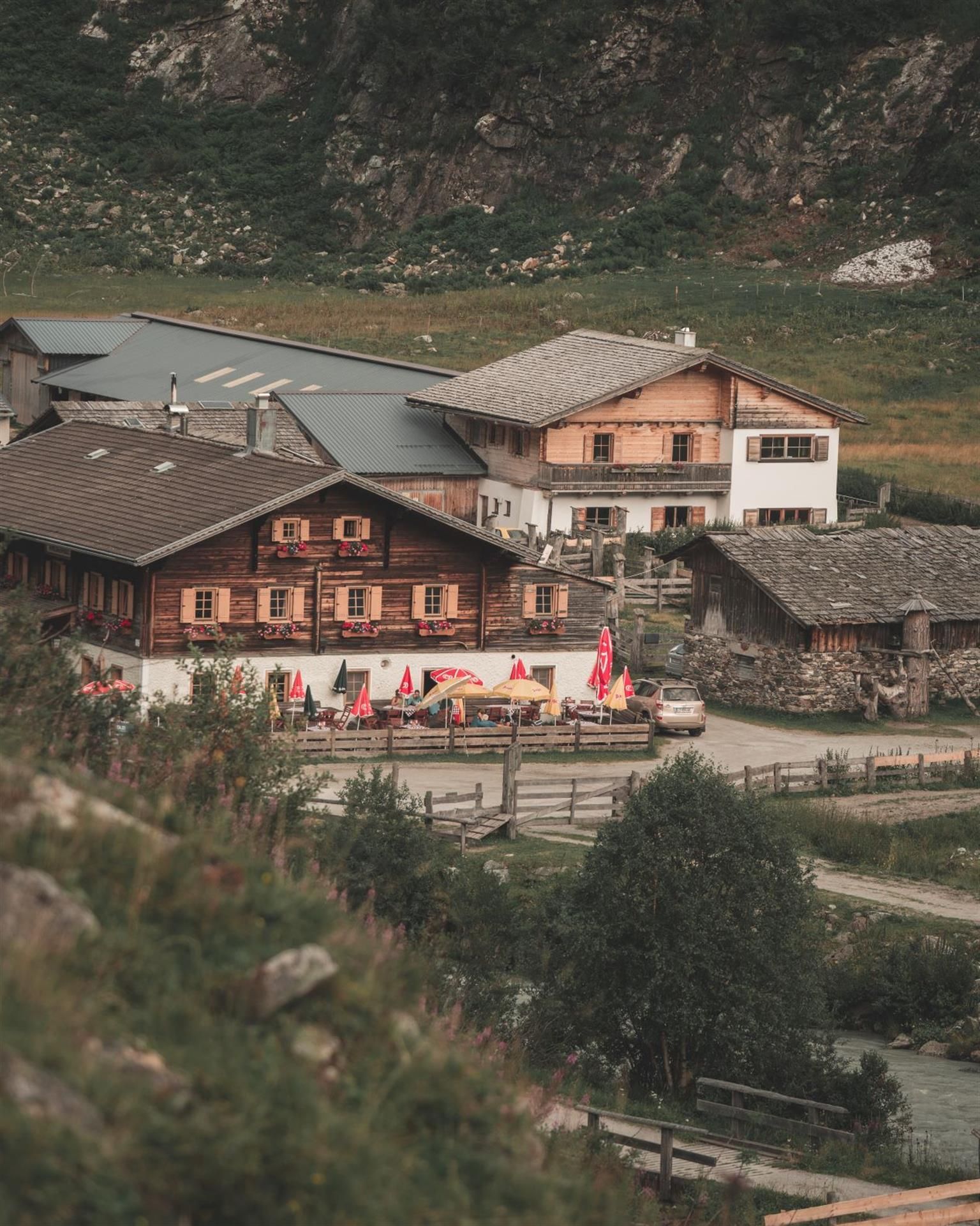 This leisurely hike starts at the Matreier Tauernhaus (1.511 m) and leads along a driveway, first slightly uphill past the alpine pastures Wohlgemutalmen up to the Berghaus Außergschlöß (1.680 m).